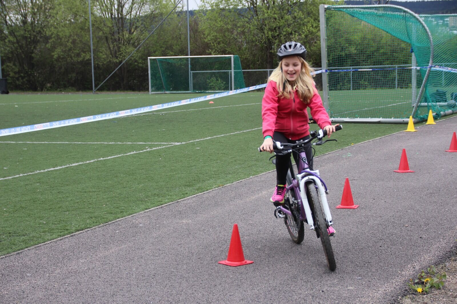 Det var rekordstort oppmøte da Groruddals-satsingen og Bjerke bydel gikk sammen med Intersport om å lage en sykkeldag på Linderudbanen. Silje (12) var blant de mange som prøvde hinderløypa.