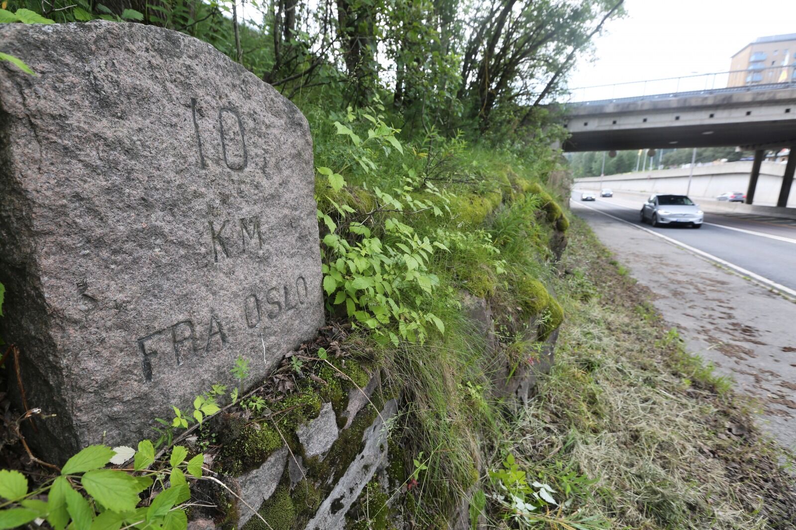 Langs Trondheimsveien, noen meter etter at du har kjørt under broa som går fra Grorud skole og Akers Avis Groruddalen til Grorud torg/Shell-stasjonen (Bergensveien), står milesteinen som viser at det er 10 km fra Oslo. Den ligger på høyre side når du kjører nordover og står rett før avkjøringen til Esso-stasjonen/Grorud. Det går et fortau langs veien under broa, men der går det i dag meget sjeldent mennesker, og når du kommer kjørende i høyre felt vil du være mest opptatt av å ta av til Grorud enn å titte langs veikanten. Milesteinen går også fargemessig inn i landskapet.