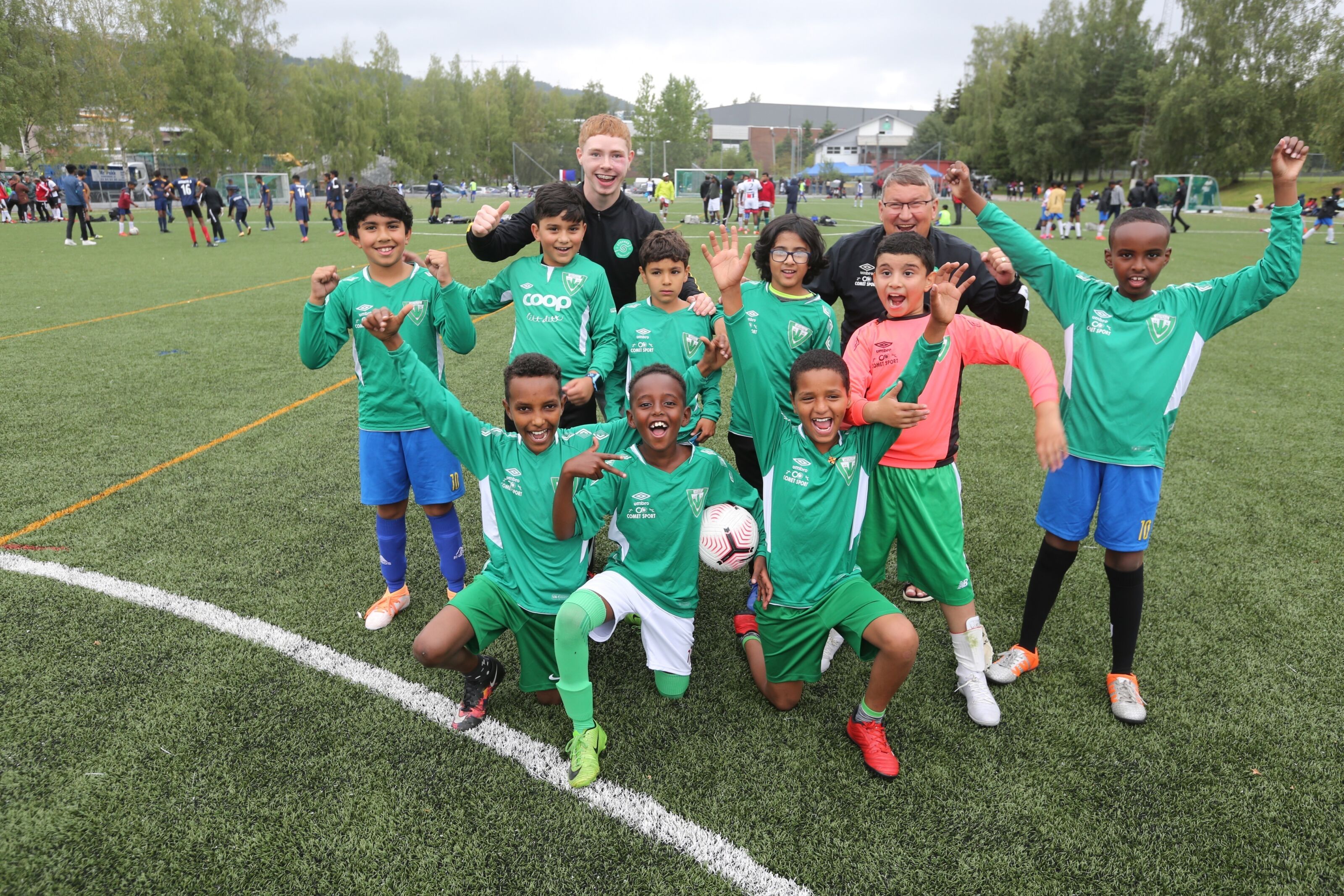 PÅ HJEMMEBANE:Disse gutta fra Stovner SK (som stilte i sine gamle Vestli-drakter) var med på fotballfesten som det eneste laget utenom det tamilske miljøet - ganske enkelt fordi det var deres hjemmebane det ble spilt på. Foto: Rolf E. WulffBilde 1 av 2