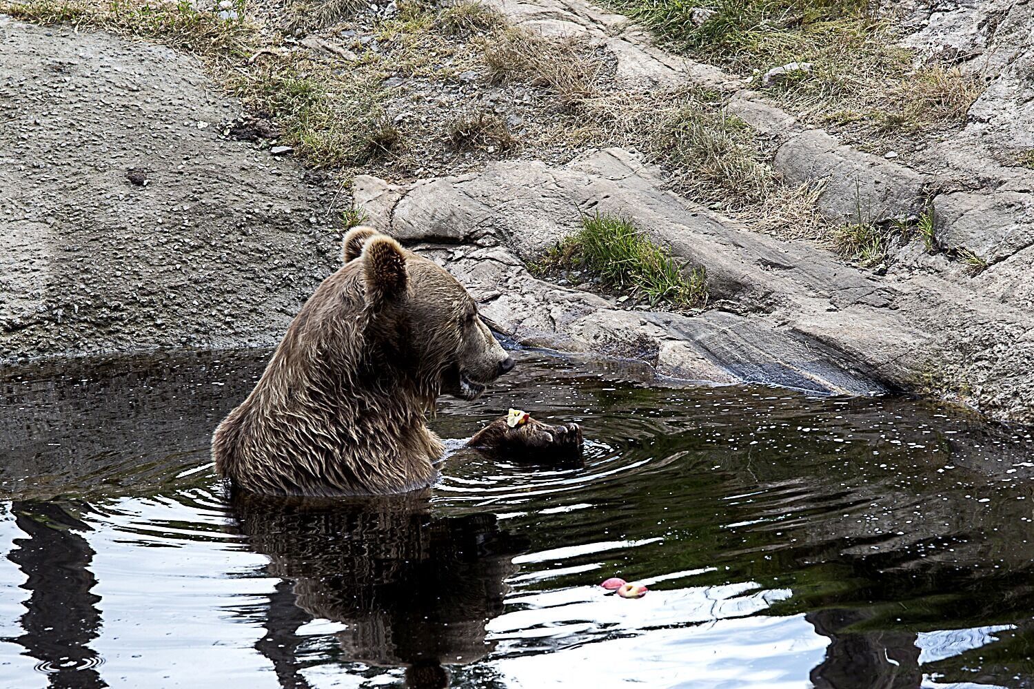 Eple sto på menyen da en bjørn tok seg et ettermiddagsbad i Bjørneparken i Flå. Det førte til fotoseier for Bjørn Roger Thorkildson.