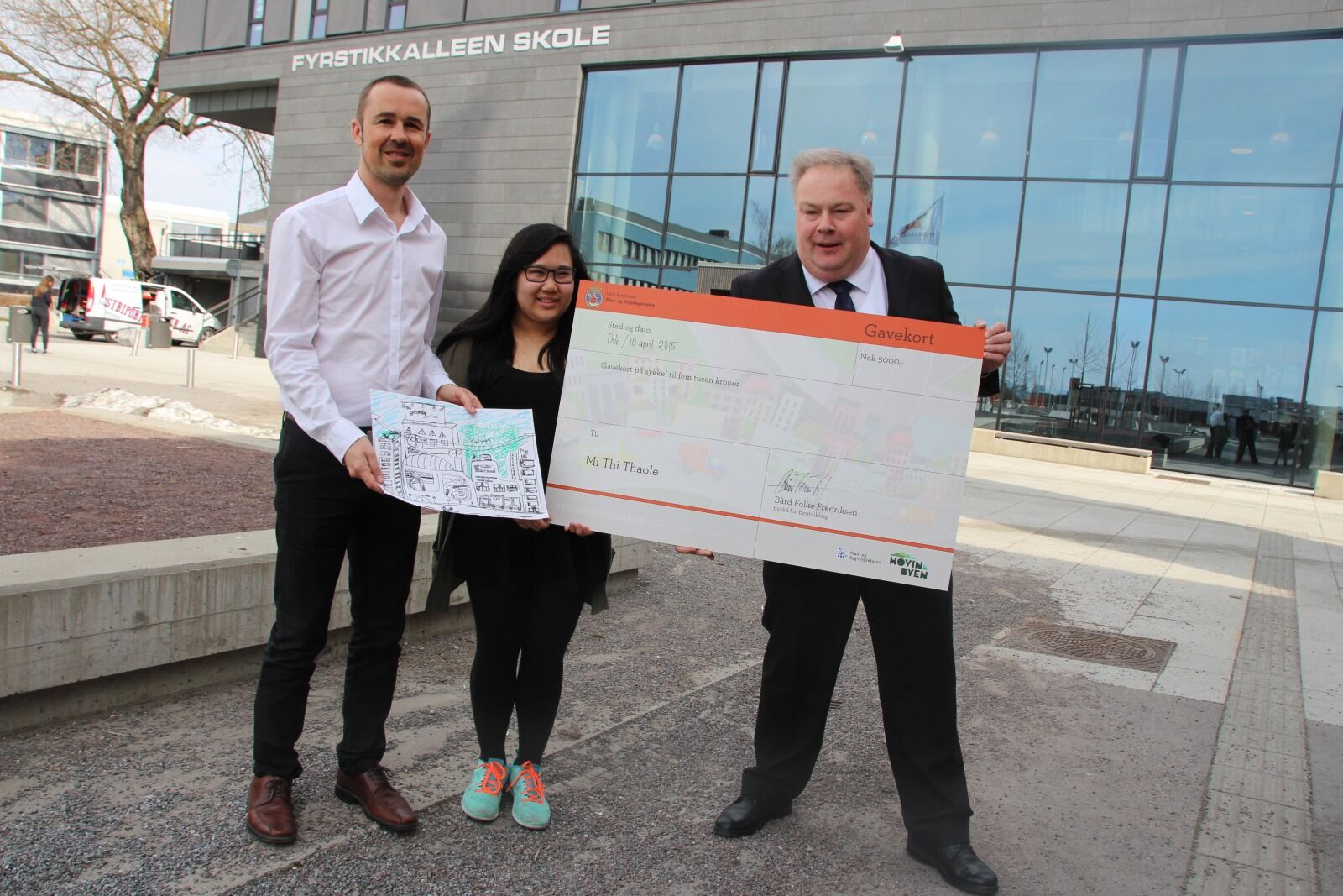 VANT: F21-elev Mi Thi Thao Le (15) vant ungdommenes tegnekonkurranse for Hovinbyen. Her med Morten Wasstøl fra Plan- og bygningsetaten (t.v.) og byutviklingsbyråd Bård Folke Fredriksen (H) (Fotos: Mie Andersen). Foto:Bilde 1 av 3For å se disse bildene må du ha et abonnementFor å se disse bildene må du ha et abonnement Tegnet seg til toppen Elisabeth Tobiassen Faane Publisert 15. apr 15 kl. 18:00 Del på sosiale medier Del Facebook Twitter E-post Abonnement