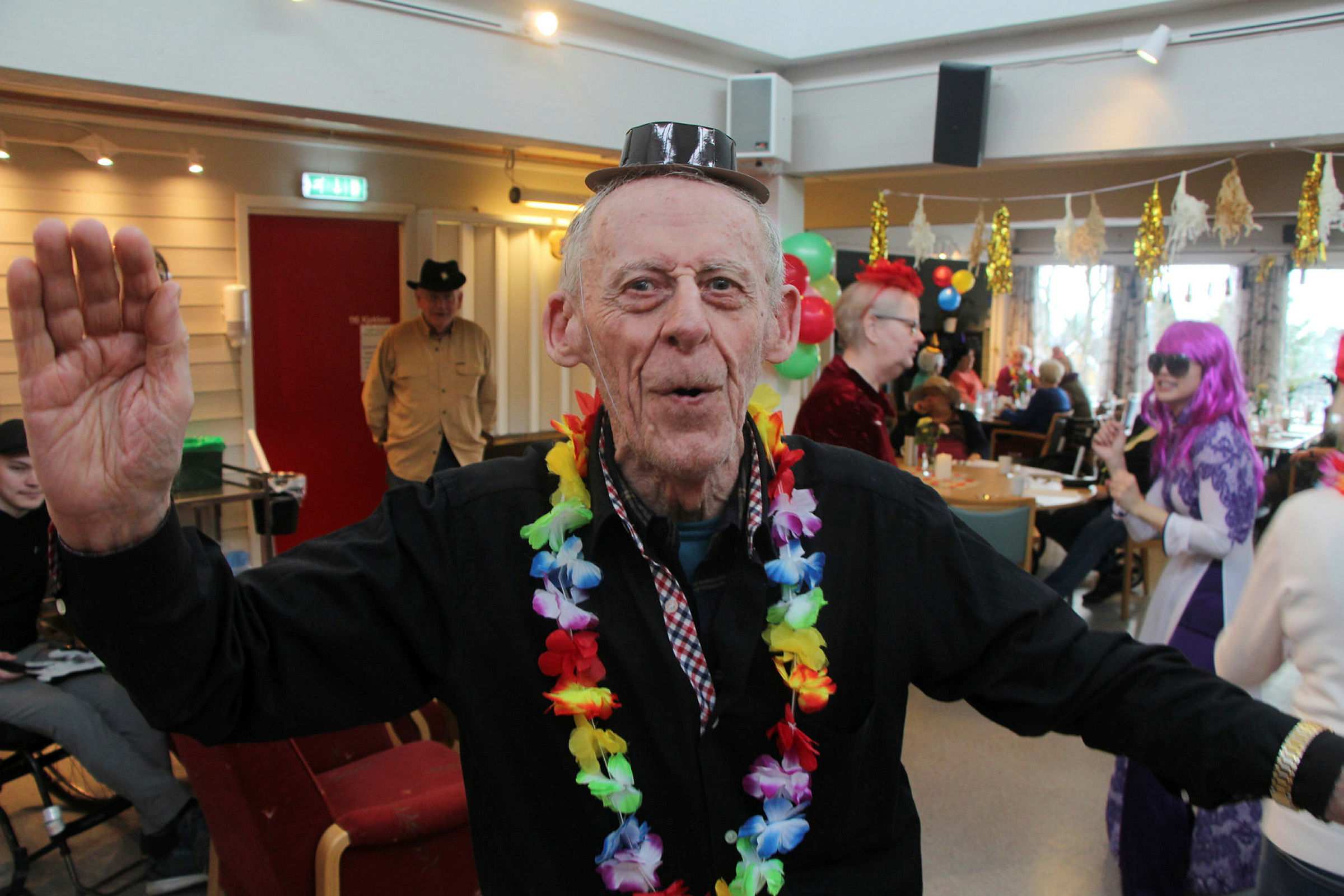 Dagens best kledde gikk til en annen, men det var ingen tvil om hvem som var dansegulvets store stjerne under Haugerud seniorsenters karneval. Odd Olafsrud var utkledd som gentleman for anledningen.