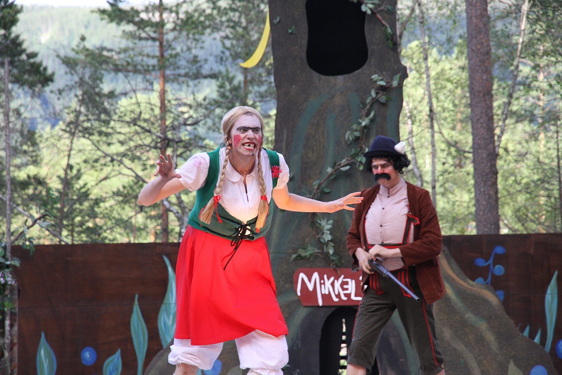Den travle karen har nemlig fått den gjeve rollen som kona på gården i oppsetningen, og er strålende fornøyd med å ha blitt tildelt den gøyale utfordringen. - Jeg spiller en sint og sur dame som jobber og spretter rundt, og er helt spedalsk. Det er utrolig morsomt, sier Magne entusiastisk. - Jeg tror jeg fikk den rollen fordi jeg er en litt utagerende type med mye humor og som kan dra ting ganske langt. Og i fjor hadde de også en mann i rollen. I dette stykket har vi få hemninger, og nesten alt er lov. Det er bedre å kjøre på med litt for mye enn litt for lite, smiler han. Forestilligen holdes på Bjørneparken i Flå i Hallingdal fram til 5. august og Magne forteller at den fenger de voksne minst like mye som barna. - Vi gjør så mye rart, og vi har tilført stykket veldig mye nytt med mange artige grep som folk ikke forventer. De voksne synes det er spennende fordi vi har mange interessante karakterer. - Det eneste som er en liten utfordring er været ettersom vi spiller utendørs. Vi blir jo kliss våte og hittil har vi bare hatt en dag uten regn, sier han.