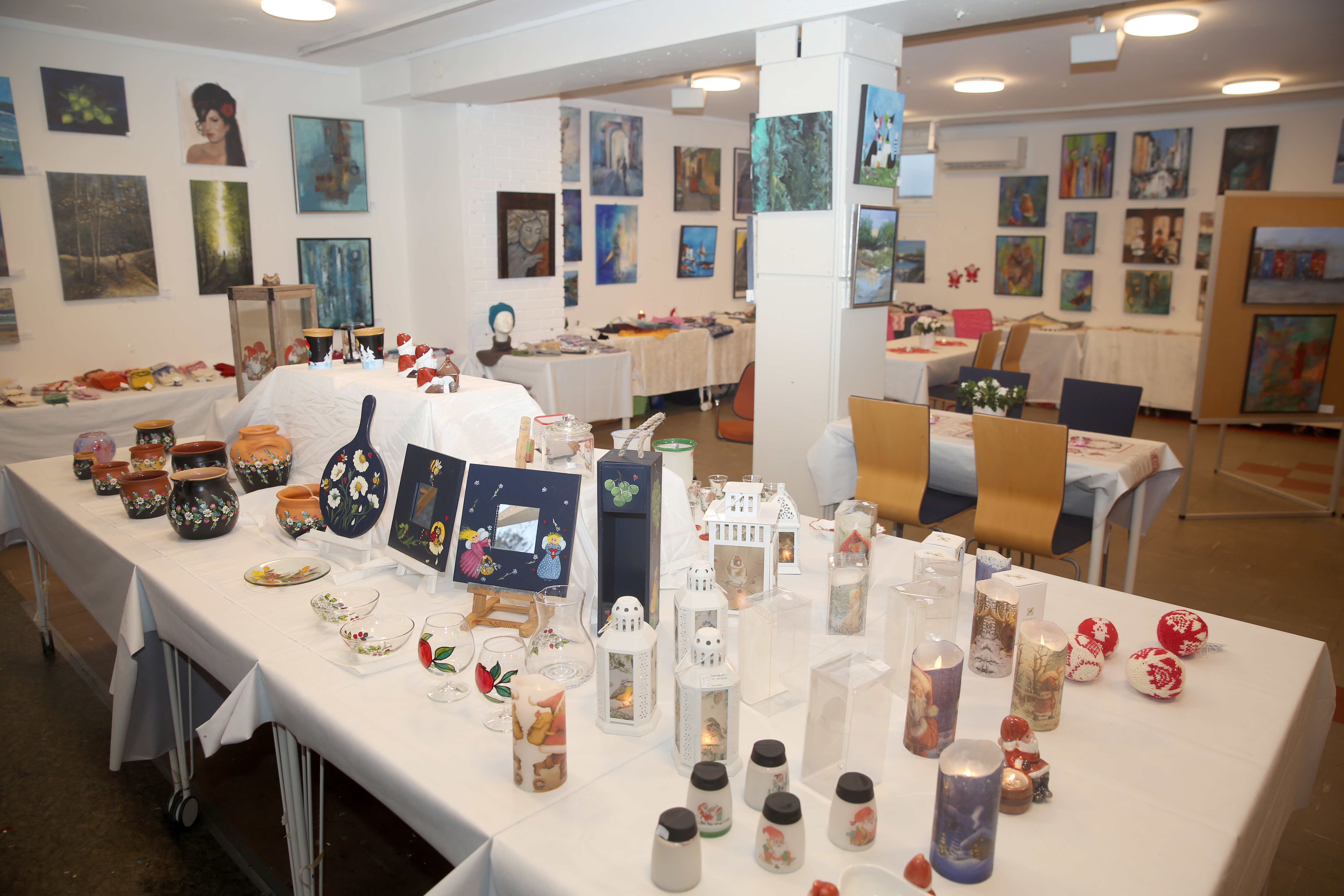 Skomaker bli ved din lest, heter det – det gjelder de malende medlemmene på Høybråten også. Ingen grunn til å endre på det vellykkede julemessekonseptet de har holdt fast ved i flere år. Det inkluderer en liten kafeteria hvor det kan fristes med blant annet vafler, kaffe, pepperkaker og gløgg. I tillegg har de loddsalg med fine gevinster.