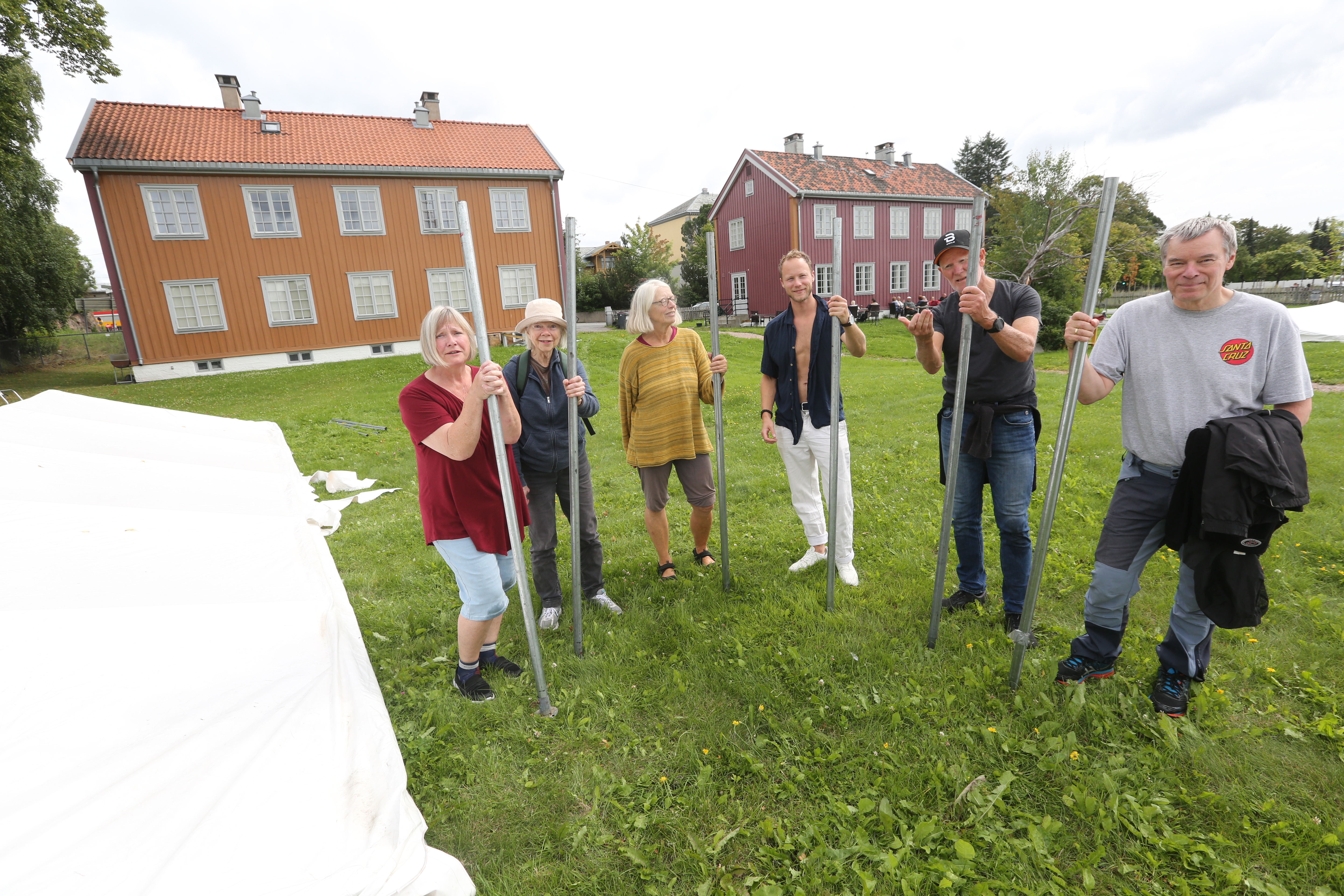 Men det er spesielt på tirsdag det hadde vært ekstra fint med hjelp til å få opp teltene som skal benyttes under festivalen.
