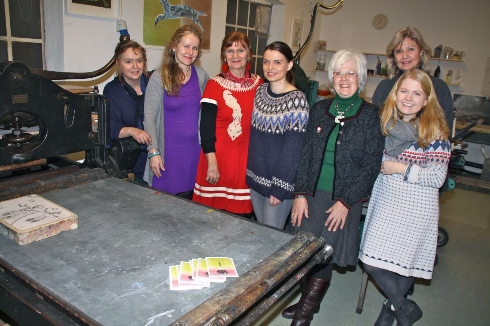 LITOGRAFIPRESSE: Her står 7 av 25 medlemmer i Norske Grafikeres Verksted som holder til i Shoddyfabrikken: Marianne Gihle (f.v.), Randi Finseth, Kari Hauge, Sabina Wydra, Dagrun Finsrud, Landa Sofia Hærnes og Janne Pedersen (bak). Foto:Bilde 1 av 1 Trykk fra 1300-tallet til i dag Elisabeth Tobiassen Faane Publisert 17. des 14 kl. 18:00 Del på sosiale medier Del Facebook Twitter E-post Abonnement