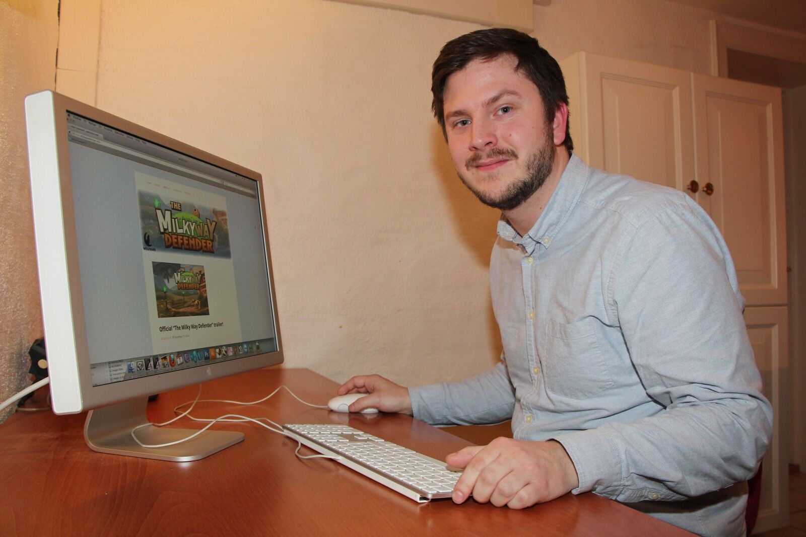 RIR PÅ BØLGEN: Ole Henrik Espeland (27) på Stovner håper å kunne nå ut til flest mulig med spillet «The Milky Way Defender» som han har utviklet sammen med Aleksander Kossacz. Bak spillet ligger en tanke om at et spill er en opplevelse. At det er mer enn bare et spill. Foto:Bilde 1 av 2