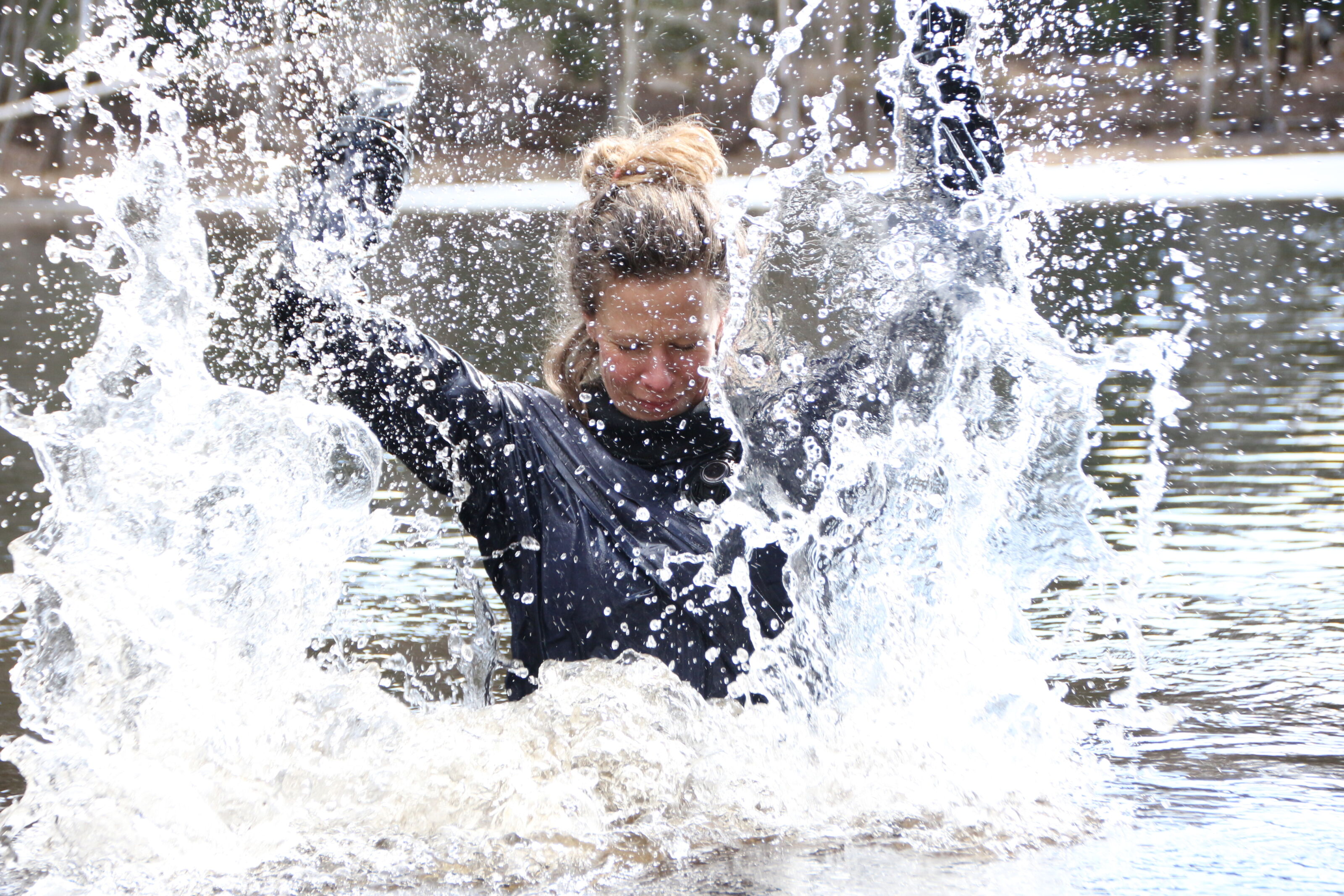I selve opplevelsen skal begge søstrene være i vannet, i den snaue timen det foregår. Og Isdammen lever definitivt opp til navnet, det er til og med fremdeles et stort isflak igjen fra vinteren.