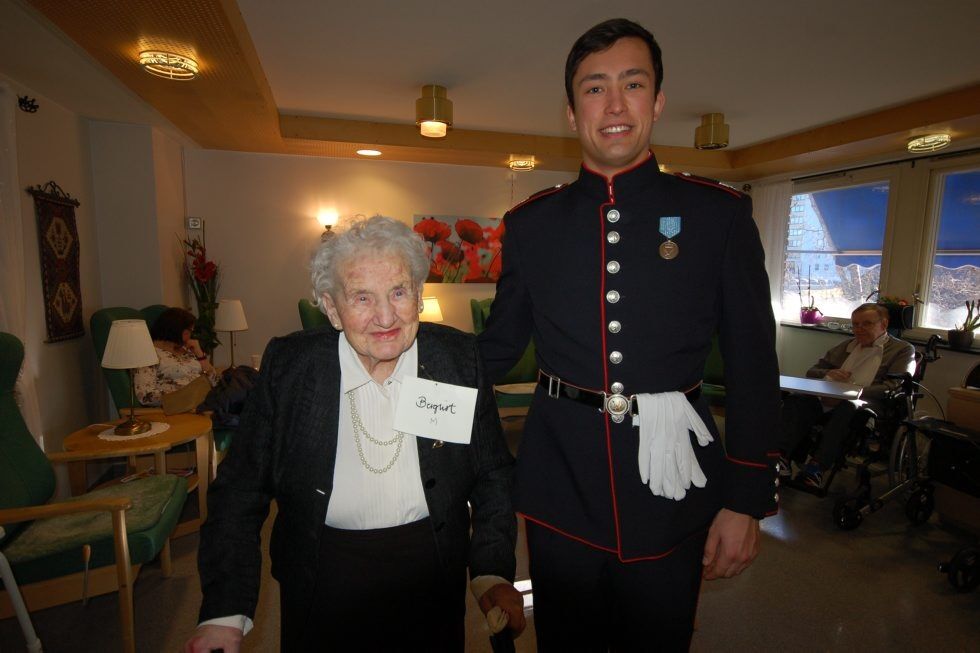 Kadettene med det karakteristiske hodeplagget kepi, hvite hansker og lakksko,, noen i bukser, en del av de kvinnelige kadettene i elegante, fotside skjørt, ankom presis kl.18.30. De hadde alle sammen vernedyktighetsmedaljen fra Hæren eller Luftforsvaret korrekt plassert på brystet.