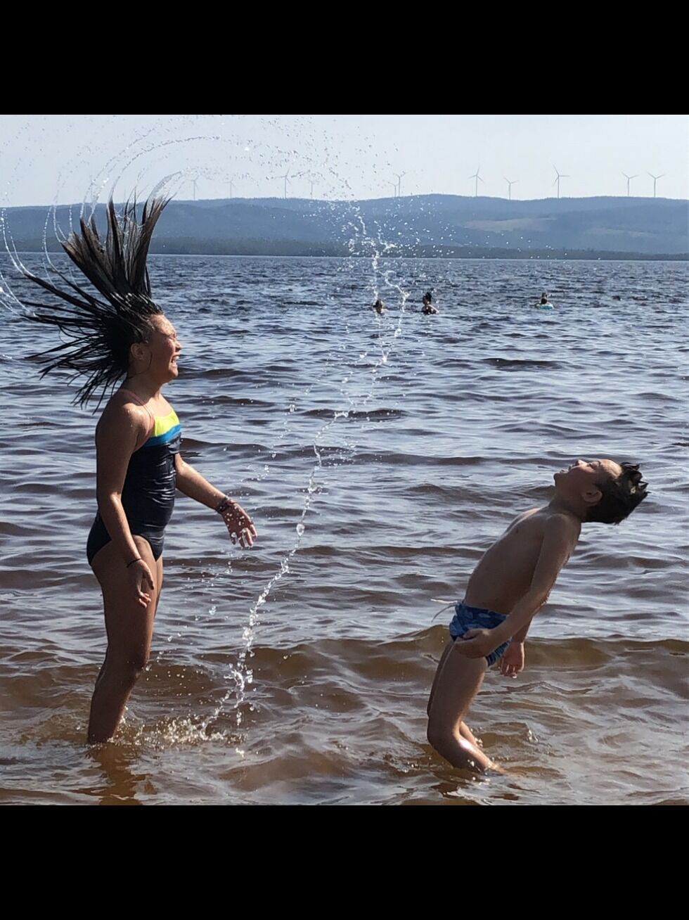 30 varmegrader, syden-stemning i Trysil, og to unger som virkelig koser seg i vannet. Sånt blir det fort fotoseier av!