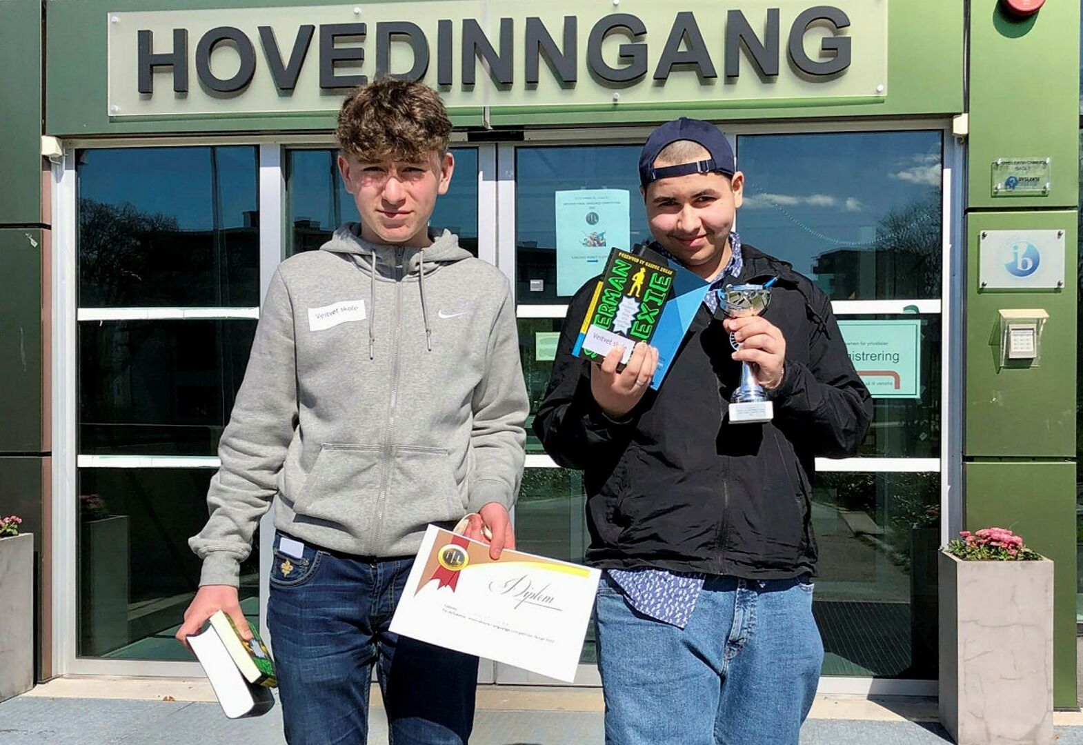 Benjamin Huskovic (14) og Mohammad Elsanov (14) fra Veitvet skole gikk helt til topps i finalen i International Language Competition (ILC). Et ekstraspørsmål måtte til for å kåre en vinner.
