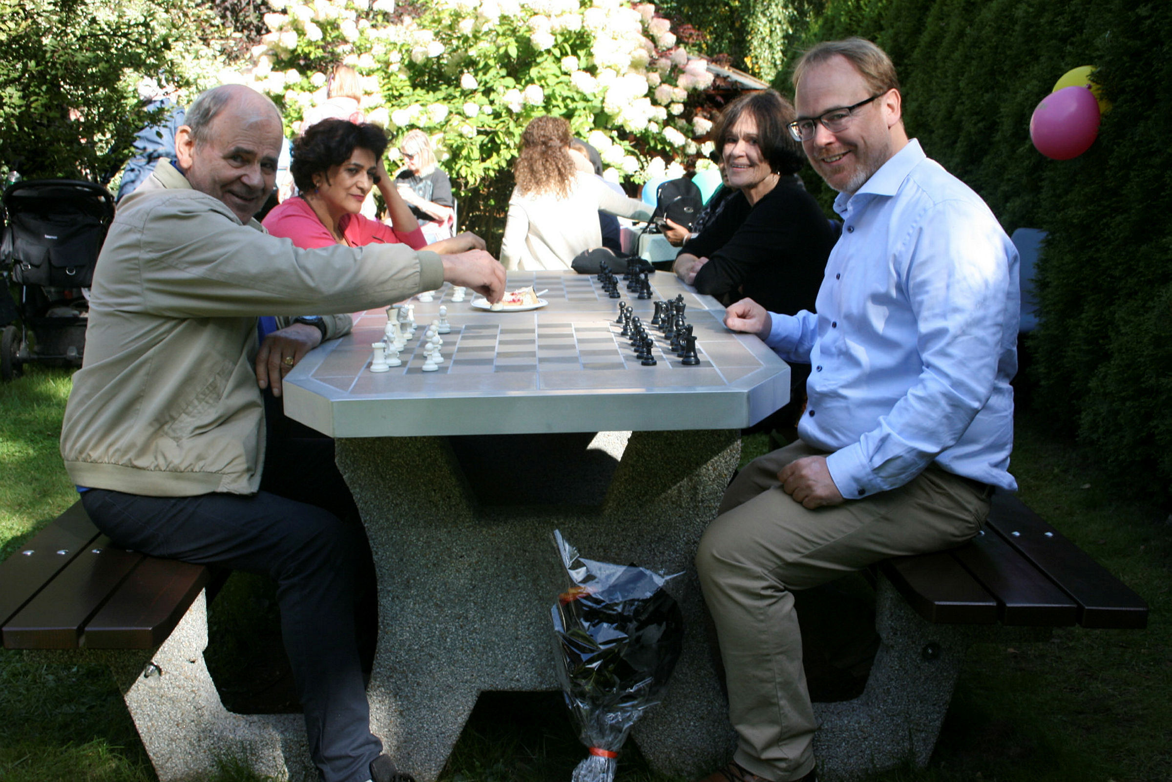 Tid for sjakk i frivilligsentralens hage:
