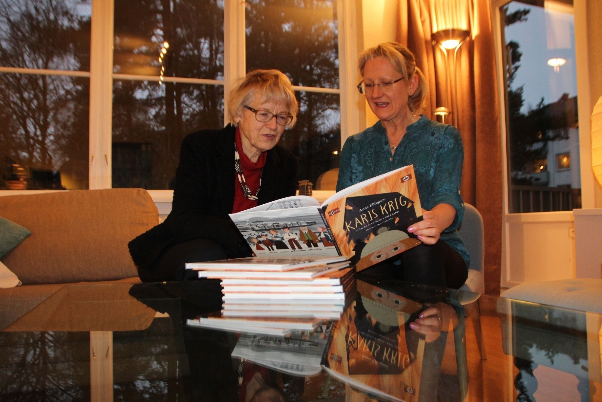 HISTORIE I BARNEBOKFORM: Anne Ellingsen (t.h.) og Ingrid Valle Ellingsen kan endelig bla i Kari Wulff og resten av Finnmarks-barnas historie. Foto:Bilde 1 av 2