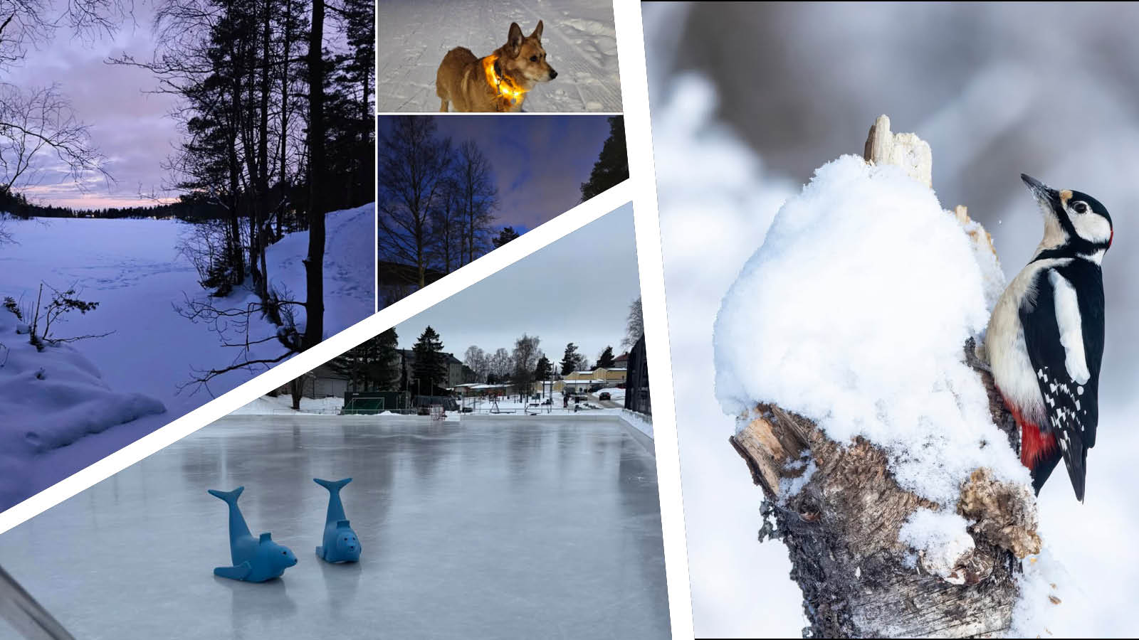 Kommentar fra avisa: Bildene fra turen viser snødekte stier og islagt vann rundt Steinbruvann, badet i blått kveldslys. En firbeint turkamerat med lysende halsbånd setter et varmt preg på vinterstemningen. Dette viser at Lillomarka er et idyllisk turmål, også på kveldstid.