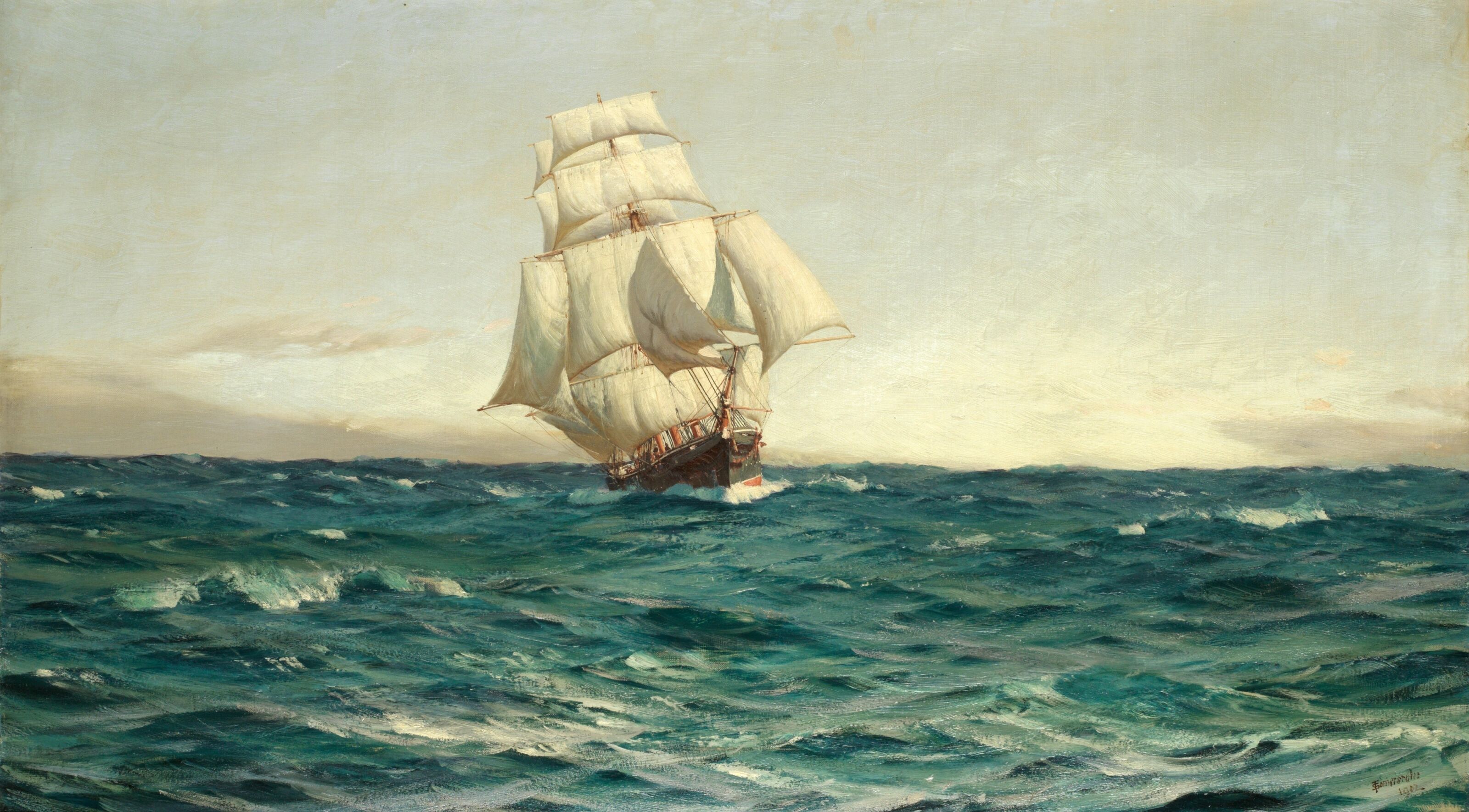 Illustrasjonsbilde: Oljemaleri. «An Old Time Cruiser» av Thomas Somerscales. Foto: (Ill.Wikimedia commons.)Bilde 1 av 7