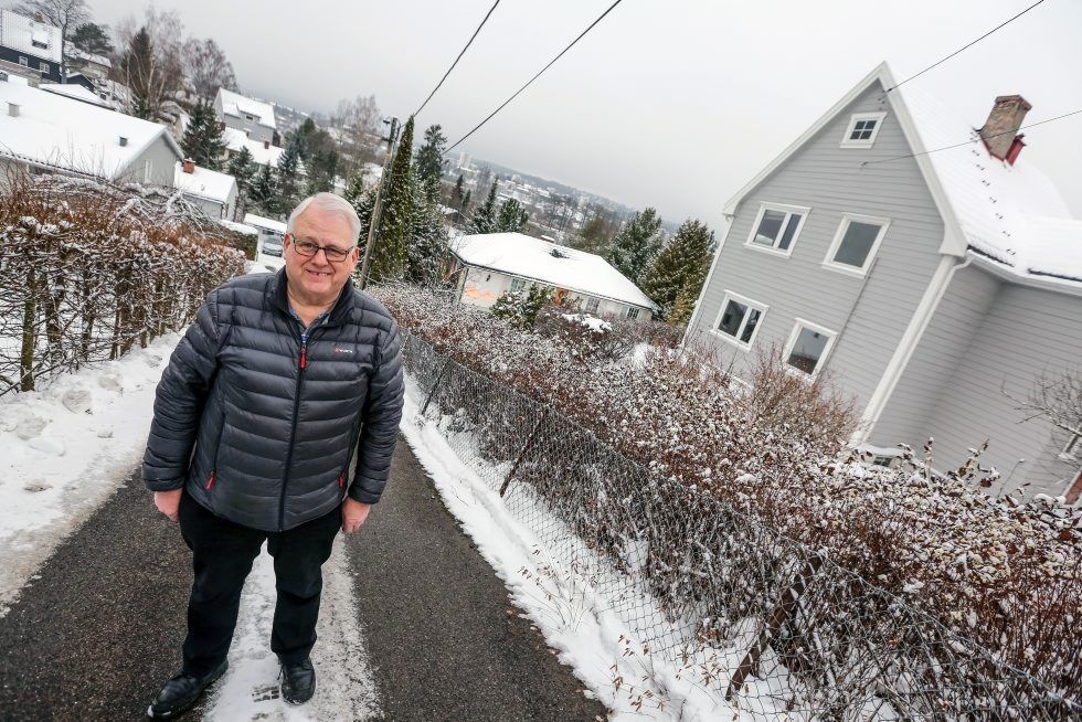 FILMHISTORISK HUS: Huset til høyre er der hvor Harald og Maren Sørvald bodde med sine tre barn, blant annet Håkon som var Åge Ekebergs svigerfar. Selv bor Åge i dag i eget hus nederst på samme tomt. At innspillingen i det gamle huset, som nå er solgt, forteller en historie som har likhet med svigerfarens flukt til Sverige er en ren tilfeldighet. Foto:Bilde 1 av 2