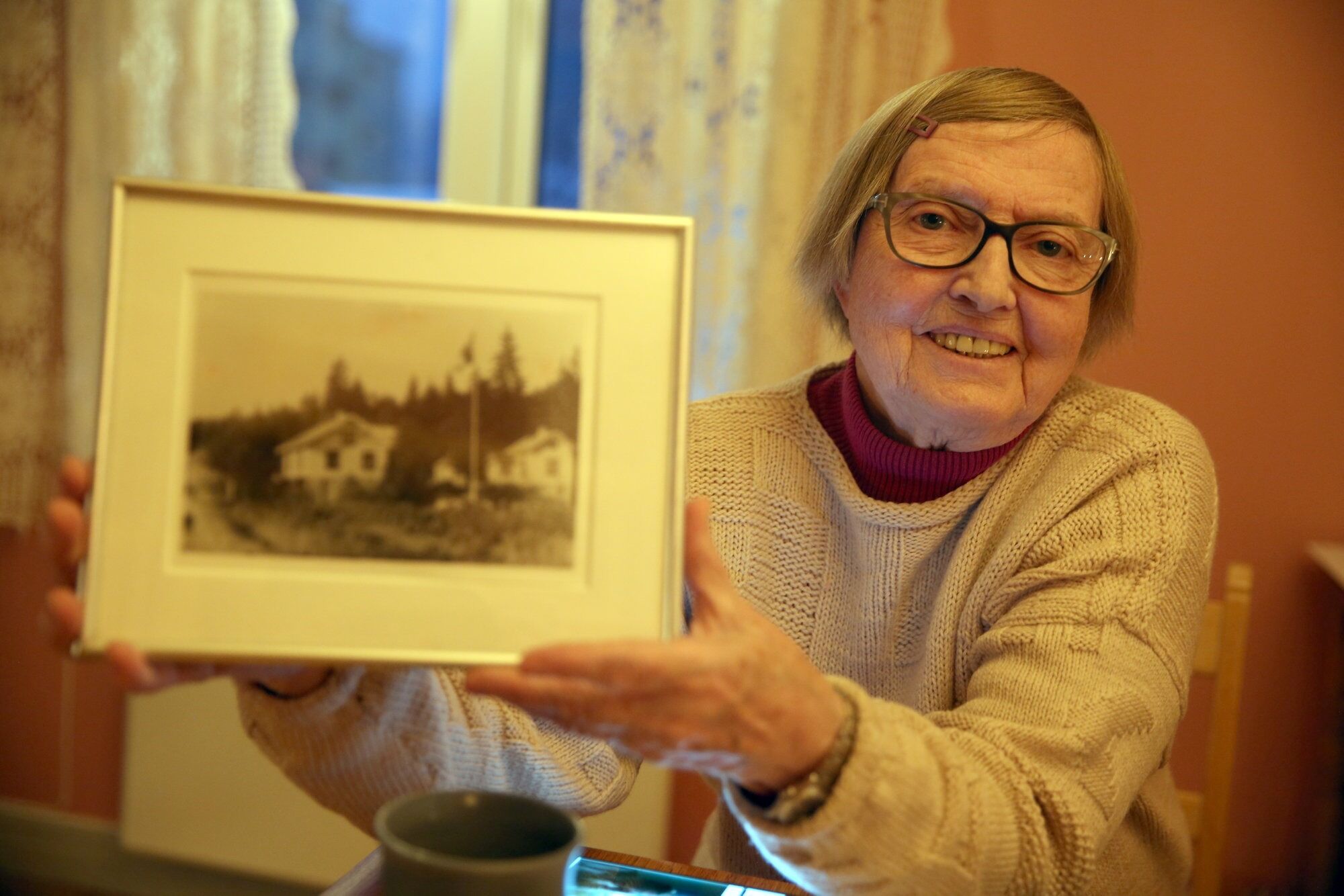 NOSTALGISK BILDE: Ingrid Haddal viser fram huset slik det var den gang hun først flyttet inn der sent på 1950-tallet. Foto:Bilde 1 av 8