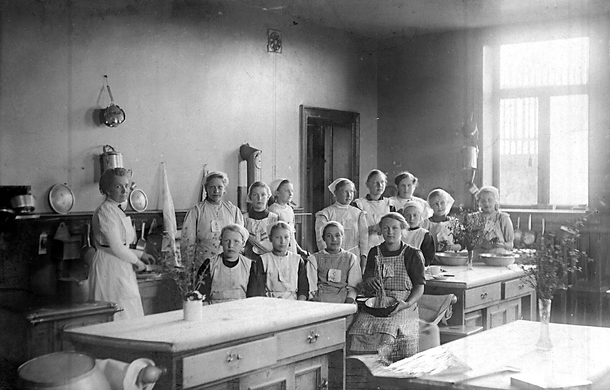 Skolekjøkkenet på Grorud skole 1913. (Foto: Groruddalen historielag.) Foto:Bilde 1 av 5