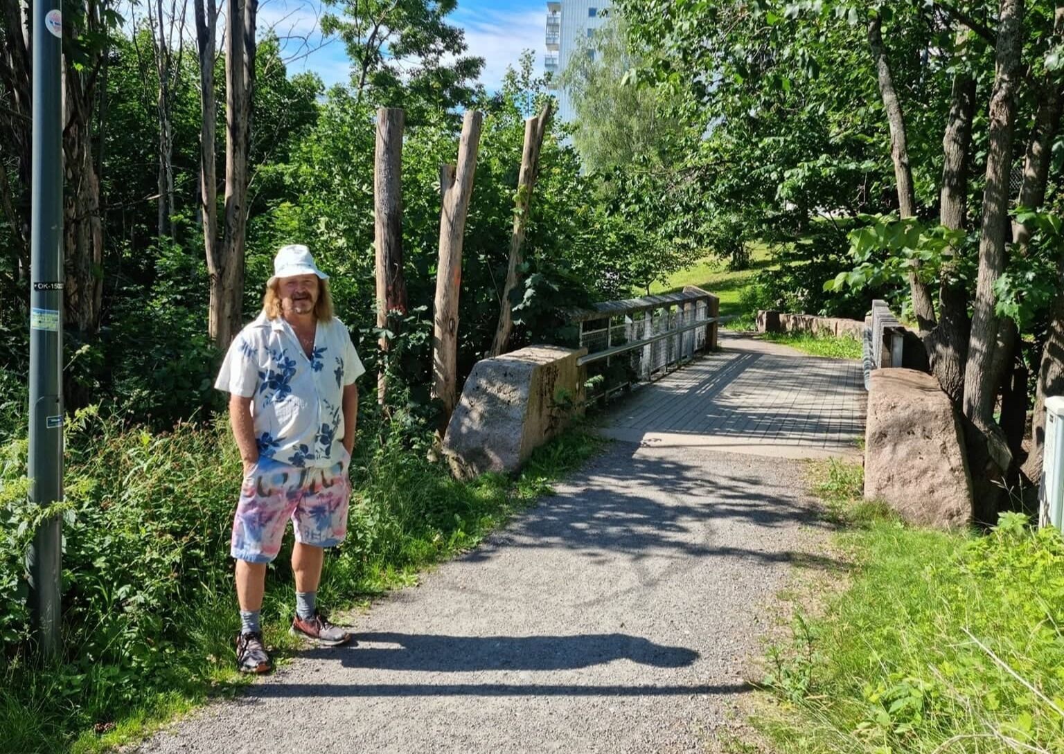 På vår vei kommer vi også over noen pjuskete almetrær. De er angrepet av almesyke, dvs. et soppangrep som etter hvert medfører at hele treet visner. For å bekjempe spreding av almesyken, må infiserte trær fjernes så raskt som mulig, da det er svært viktig å unngå at de ødeleggende soppsporene får mulighet til å spre seg til nye trær.
