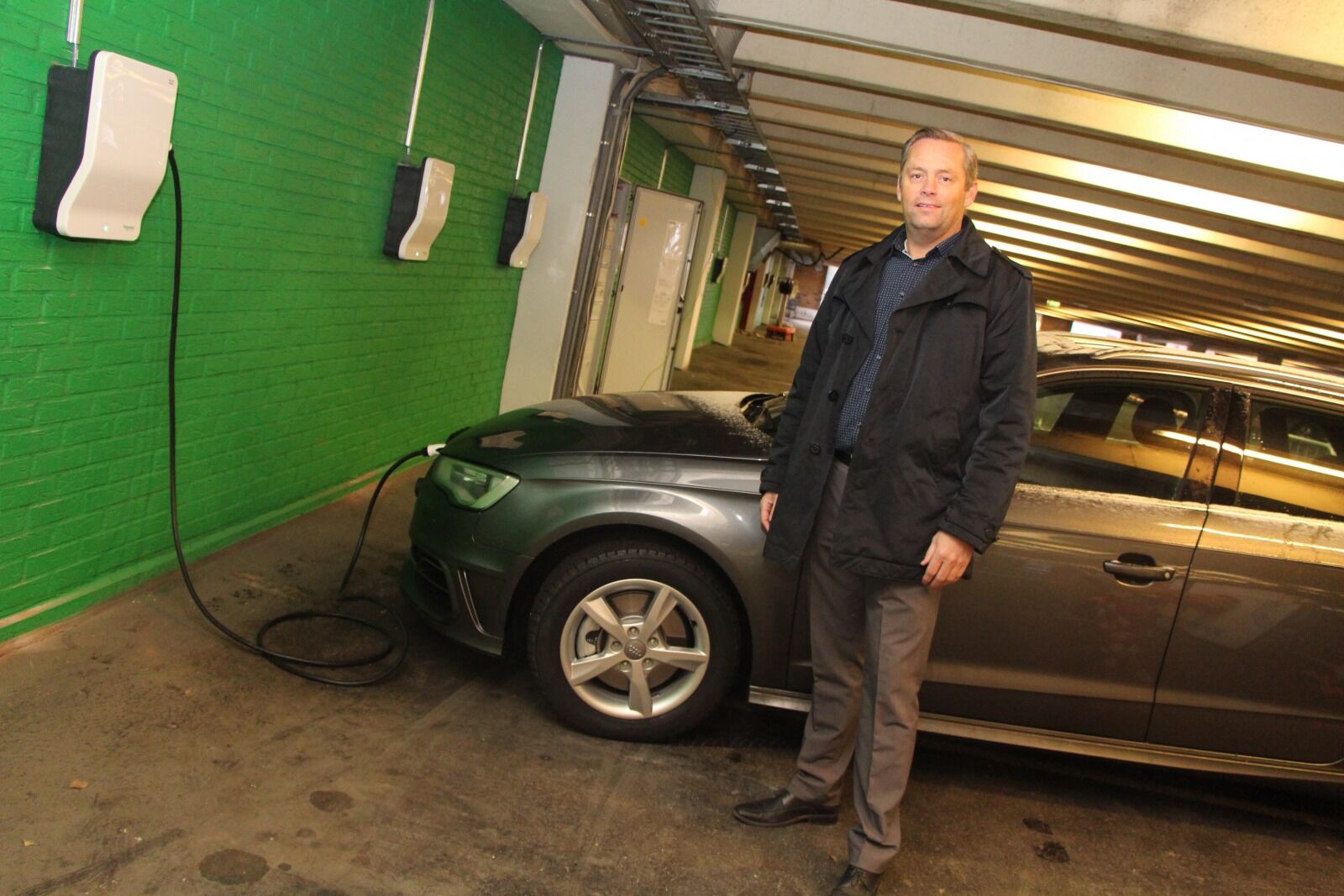 Senterleder Jo Espen Eriksen forteller at Stovner senter skal møte klima- og miljøutfordringene med 22 nye el-bilplasser i plan 3.