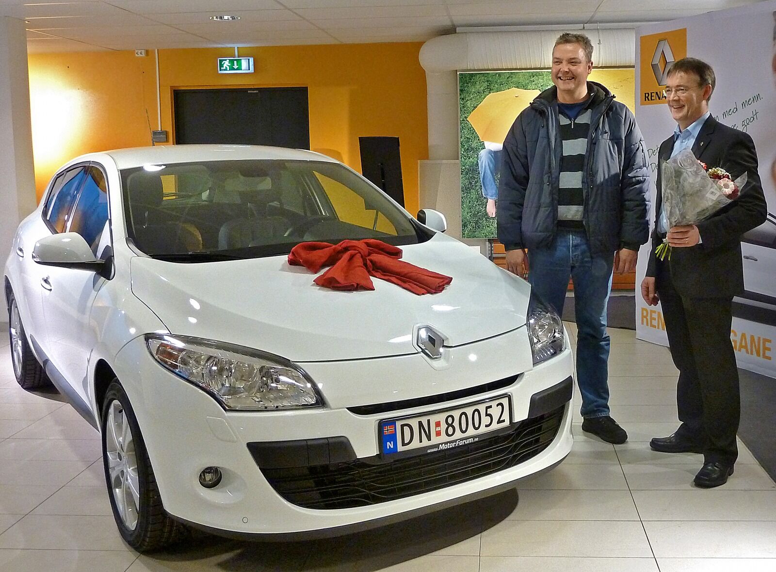 Administrerende direktør Tom Arne Melbostad i Renault Norge møtte selv opp på Motor Forum på Brobekk for å overrekke bilnøkler og blomster til den heldige Hamar-vinneren.
