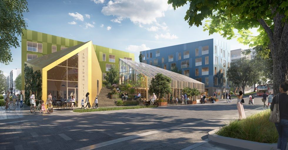 FINALIST 1: Urban Village. Teamet består av arkitekter og utviklere fra OBOS Nye Hjem AS, LPO architects, SLA, Bollinger+Grohmann, Veidekke Entreprenør AS. De ønsker med sitt prosjekt blant annet å fokusere på å skape gode sosiale møteplasser i tillegg til miljø. Foto:Bilde 1 av 2