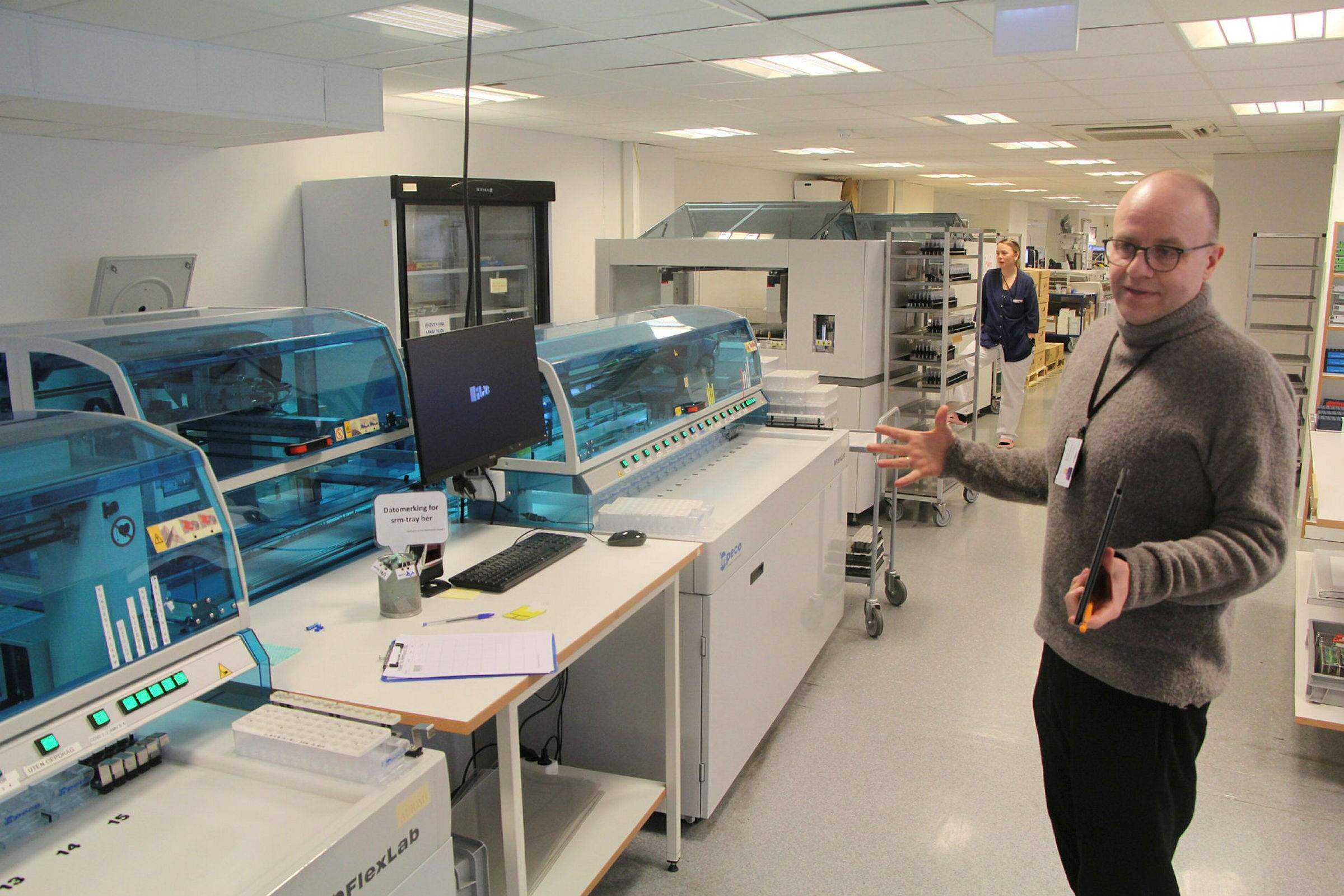 OMVISNING: Fürst på Furuset har analysert over en million korona-tester. Da prøvene ankom Furuset måtte laboratoriet ha analysesvaret klart innen neste dag. – Hektisk periode, sier avdelingsleder Einar P. Svartsund. Foto: Sindre Veum ApnesethBilde 1 av 1