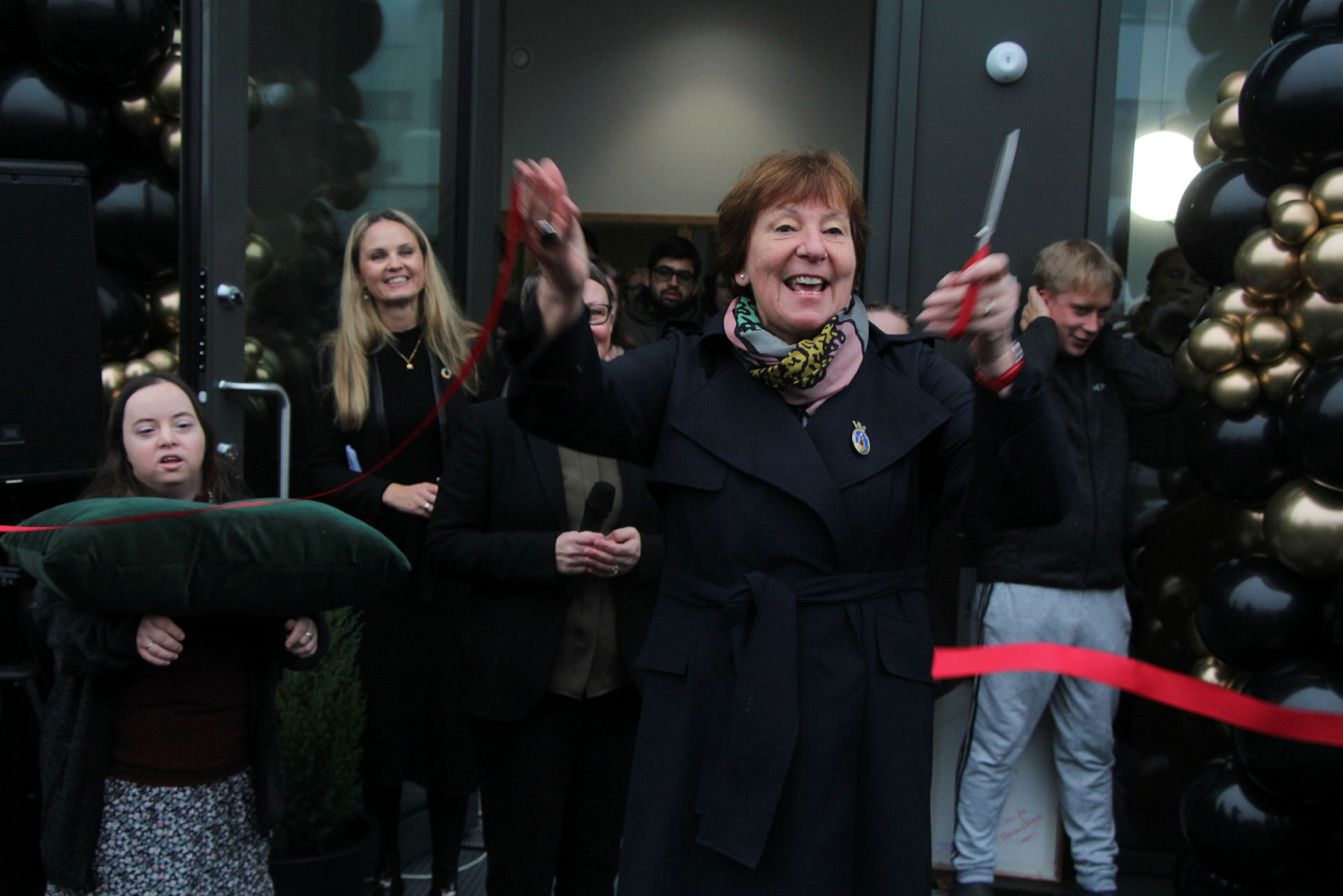 OFFISIELT: Marianne Borgen (SV) kunne heve hendene og ønske velkommen inn i Fossheims nye lokaler for første gang. Foto: Sindre Veum ApnesethBilde 1 av 1 Feststemning da Fossheim endelig fikk sitt nye hjem Caroline Hammer Publisert 3. nov 22 kl. 18:00 Del på sosiale medier Del Facebook Twitter E-post Abonnement
