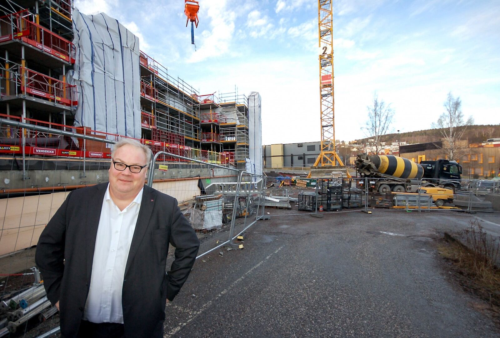 NYTT PROSEJEKT: I 2014 var Bård Folke Fredriksen byråd for byutvikling, og la fram kommuneplanen som la til rette for den boligutbyggingen som i dag finner sted i dalbunnen. Nå har han muligheter til å følge opp det han en gang startet. Til venstre for Bård Folke Fredriksen bygger en av NBBLs store aktører OBOS boligområdet «Bien» på Vollebekk. Til venstre for åskammen i bakgrunnen ligger Årvoll - arena for en annen av NBBLs store utbyggere, Ungdommens Selvbyggerlag (USBL). Foto:Bilde 1 av 1