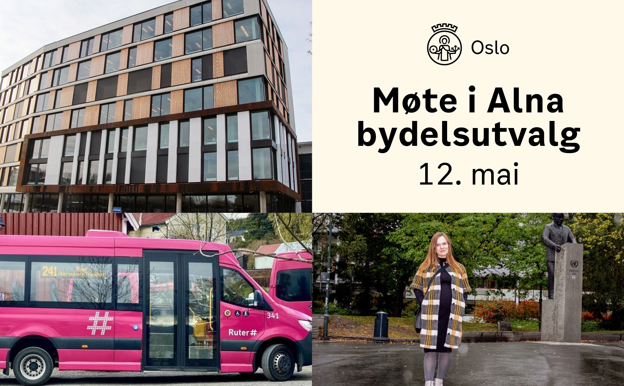 Møtested: Innbyggertorget, Alna bydelshus, Trygve Lies plass 6, rett i nærheten av buss- og t-banestopp.