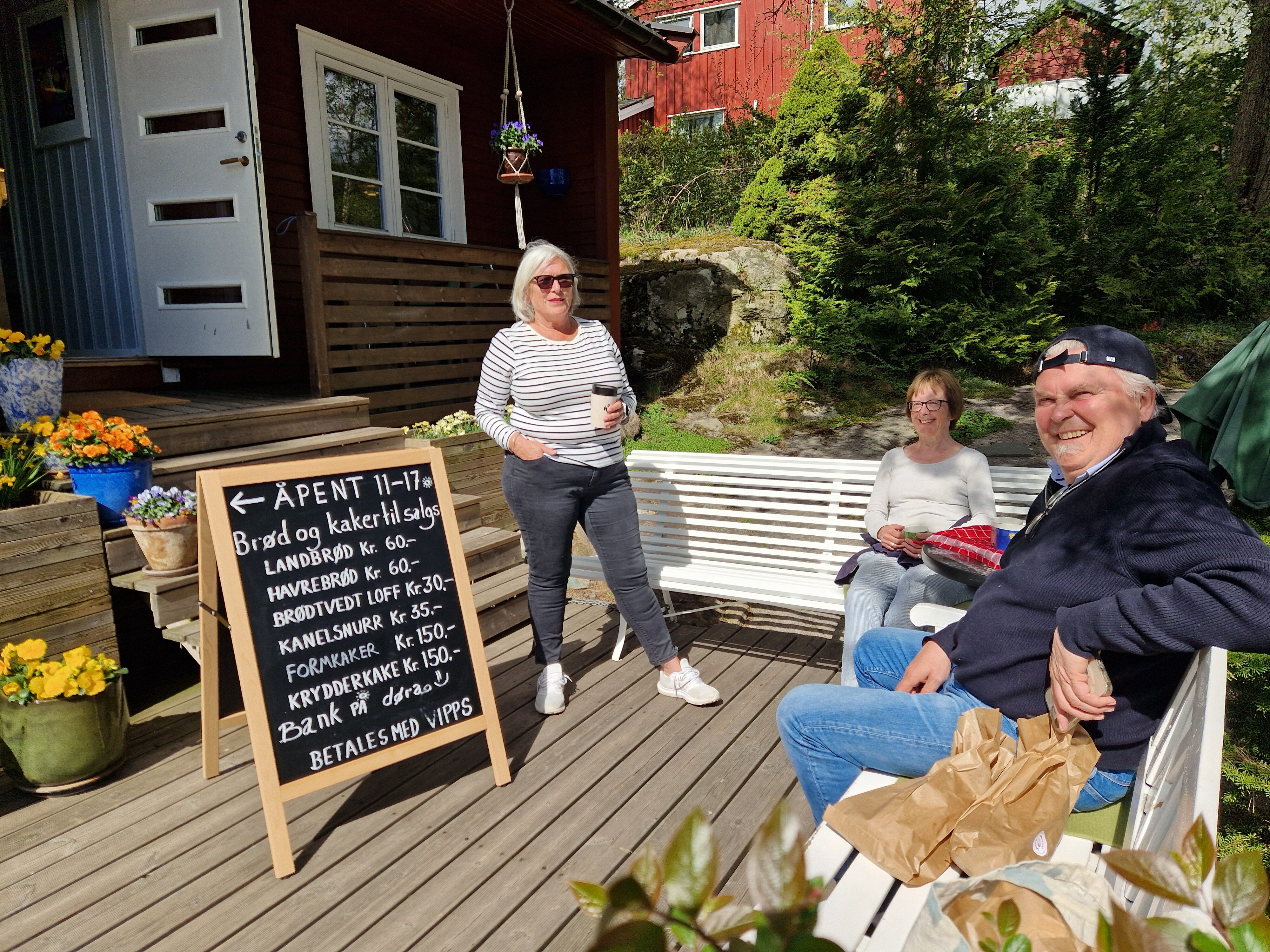 Det er søndag morgen, vårsola stråler ned på plattingen foran døra til Sidsel Sidsærks vei 40 på Rødtvet. Her står to benker, med et bord som hver helg er dekket med kaffekanne og et brett med boller.