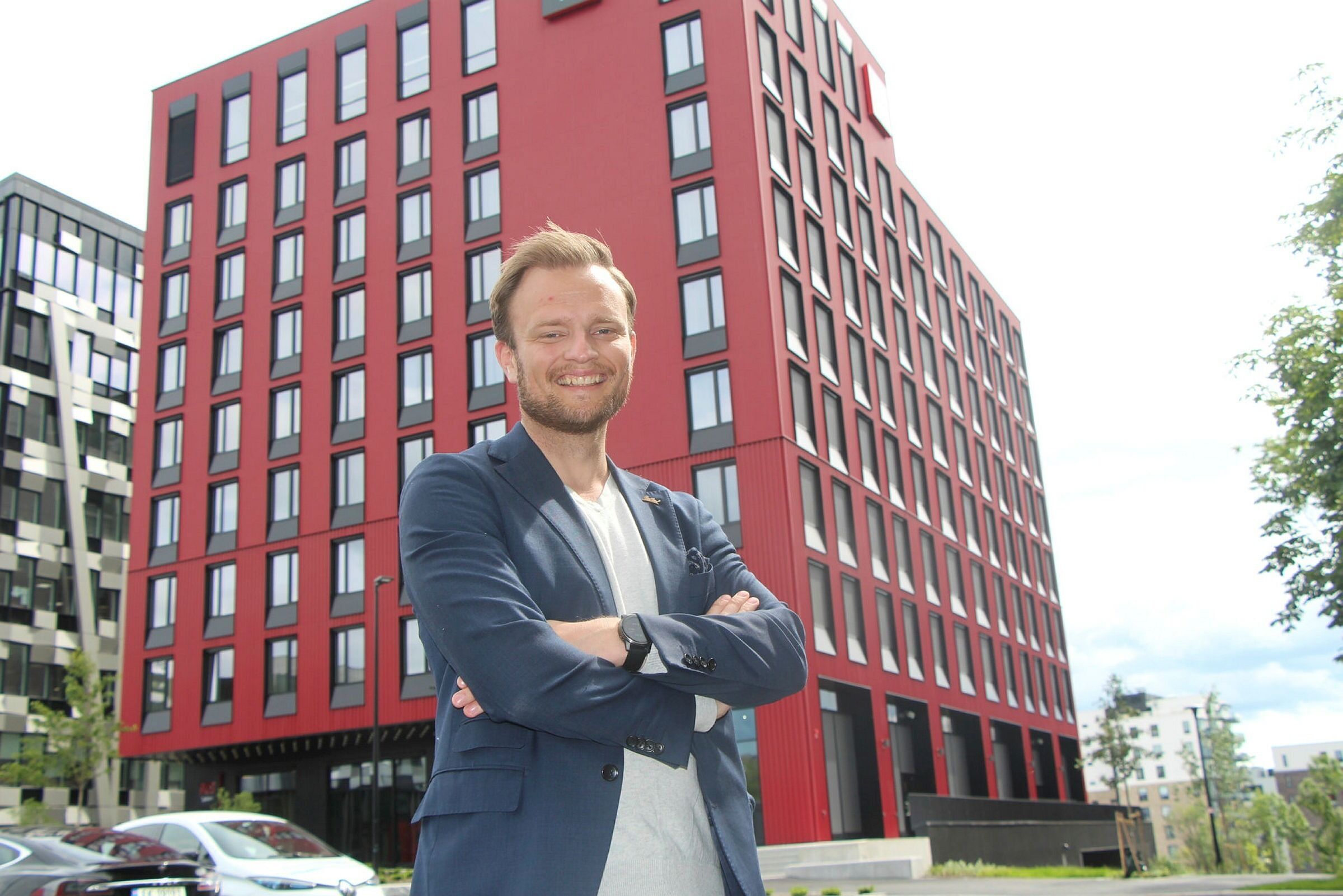 Jørgen Holte fra Lutvann er hotelldirektør på nyåpnede Radisson RED. Han sammenligner hotellets atmosfære med Youngstorvet og hevder å ha Oslos beste utsikt.
