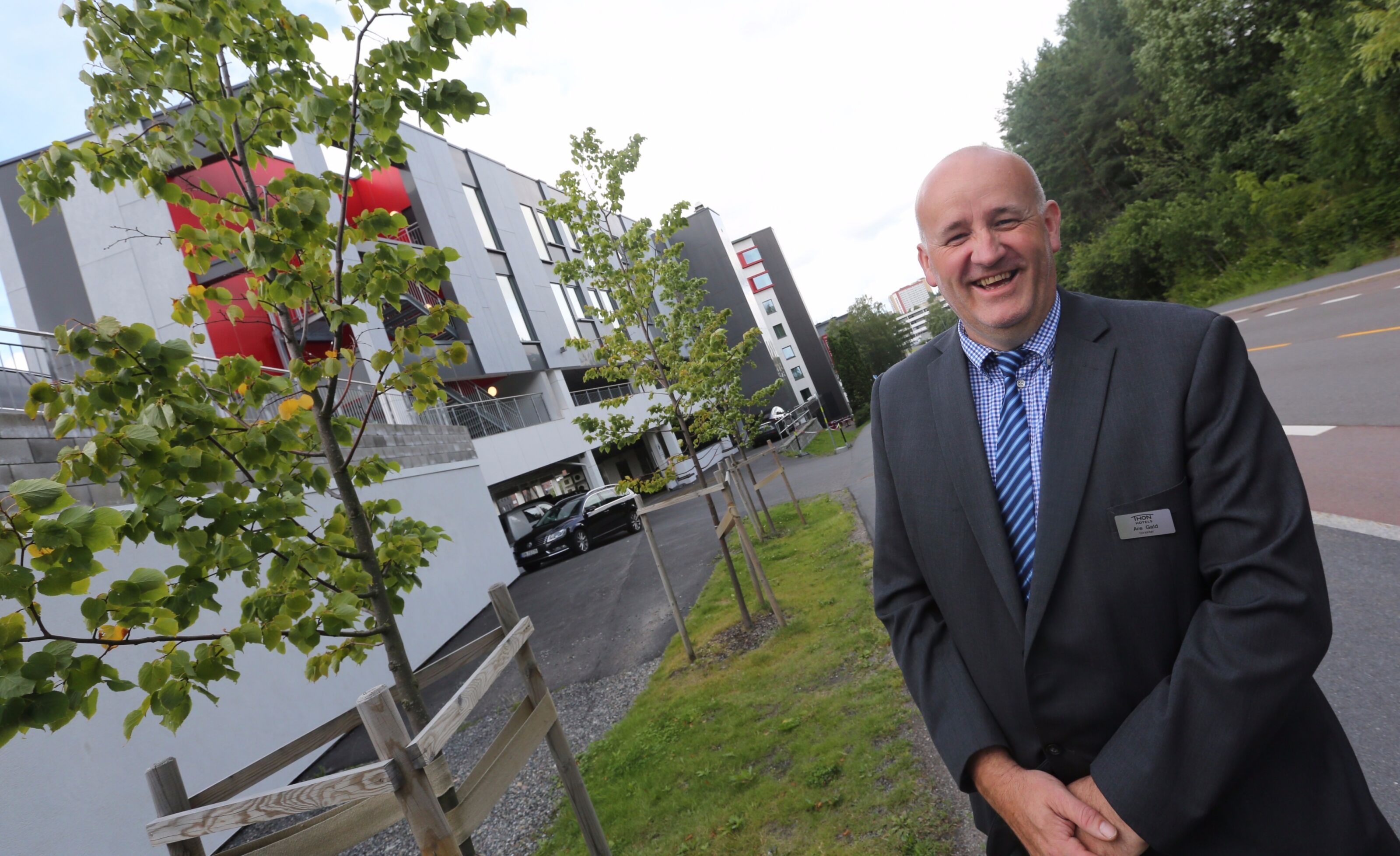 Det er en svært fornøyd hotelldirektør Akers Avis Groruddalen får i tale på en ny hektisk dag ved hotellet.