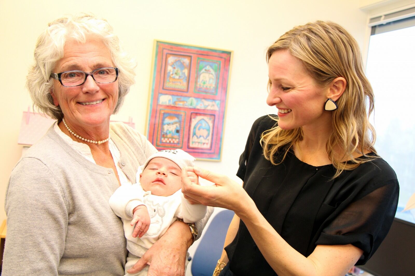 MER OPPFØLGING FOR DE MINSTE: Helsesøster Solveig Ude ved Alna helsetasjon holder lille Adrian (5 uker) i armene. Mamma Nastaran Mamuti har nettopp vært på kontroll og fått vite av byråd for eldre- og sosiale tjenester, Inga Marthe Thorkildsen (SV), at de bevilger 10 millioner kroner til helsestasjoner for tettere oppfølging av de minste barna. Foto:Bilde 1 av 1