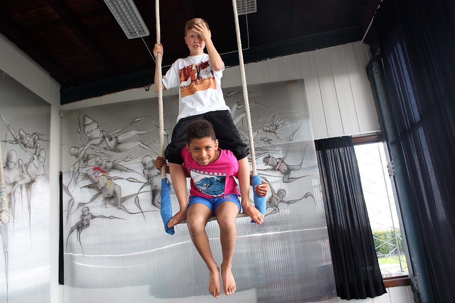 Denzel (9) og Matheo (10) går på sommerskole på Nysirkus Bjerke. De er to av mange barn og ungdommer som har fått prøve seg på en rekke aktiviteter innenfor sirkus.