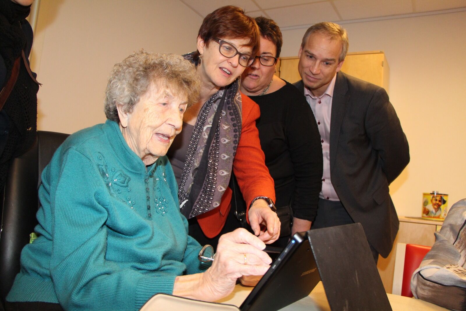 LOT SEG IMPONERE: Inger Johanne Østgaard (92) viser eldrebyråd Aud Kvalbein og stortingspolitikerne Olaug Bollestad og Hans Olav Syversen hvordan et nettbrett fungerer (Fotos: Caroline Bremer). Foto:Bilde 1 av 2For å se disse bildene må du ha et abonnement 92-åring ble «superbruker» Elisabeth Tobiassen Faane Publisert 22. jan 15 kl. 18:00 Del på sosiale medier Del Facebook Twitter E-post Abonnement
