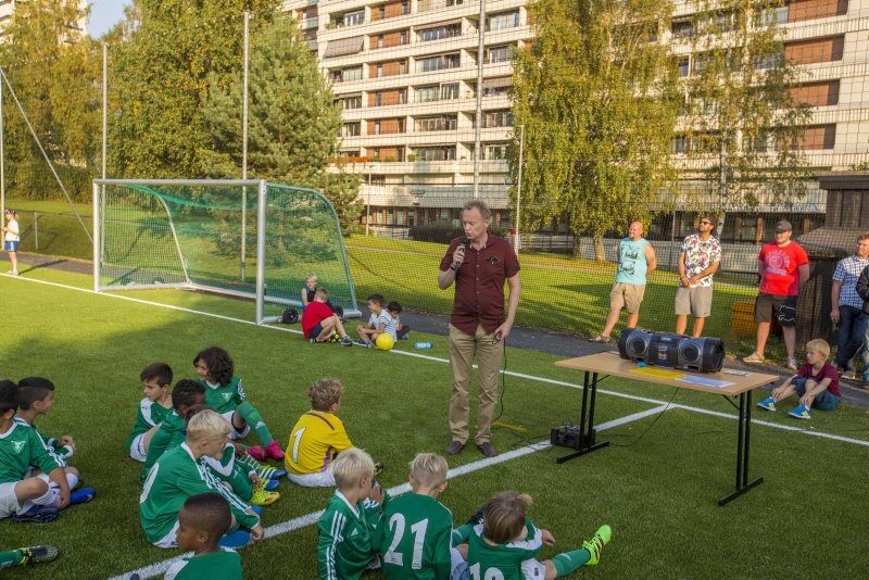 Torsdag 15. september deltok byrådslederen på åpningen av den rehabiliterte kunstgressbanen på Tveita. Johansen er selv oppvokst i området, og bor enda i nærheten.