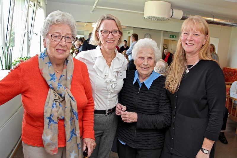 FULL AKTIVITET: Opprustningsperioden av Bjerke rehabiliterings- og mestringssenter er nå over. Det er til stor glede for to av brukerne, Else Norén (t.v.) og Esther Andresen (andre t.h.), sentrets leder Marit Hoff (andre t.v.) og avdelingsleder i Hjemmetjenesten Bydel Bjerke, Hilde Selstø. Foto: Caroline BremerBilde 1 av 3