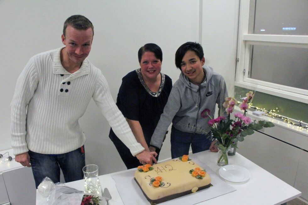 GOD STEMNING: Og da kaka var skjært opp og markeringen overstått var det bare å spise i vei. Her med leder av Haugerud frivilligsentral Ann Kristin Pettersen, leder av Møteplass UNG Haugerud Christina Berg, og H2 sin hussjef Idil Mohamed.
