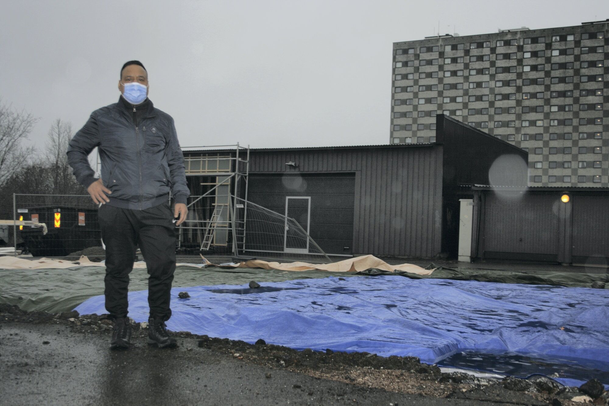 SINT: Harmohinder Singh er frustrert over at han og tretten av naboene fortsatt må bruke gjesteparkeringen, uten å få informasjon om når garasjene blir erstattet. Foreløpig er det kun lagt ned presenning der garasjene sto tidligere. Foto:Bilde 1 av 1
