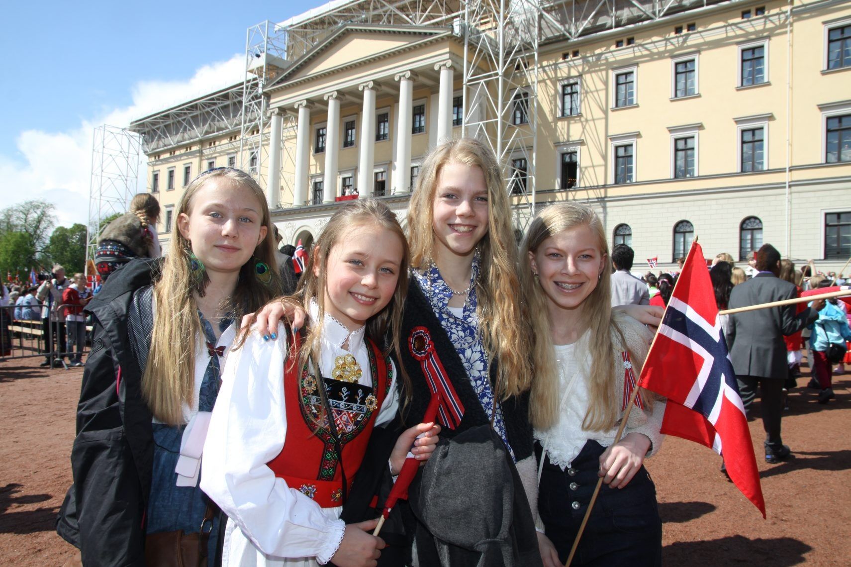 Lindeberg-jentene Anette, Elin, Celina og Aurora er ikke i tvil. Det morsomste med barnetoget er å vinke til Kongen.
