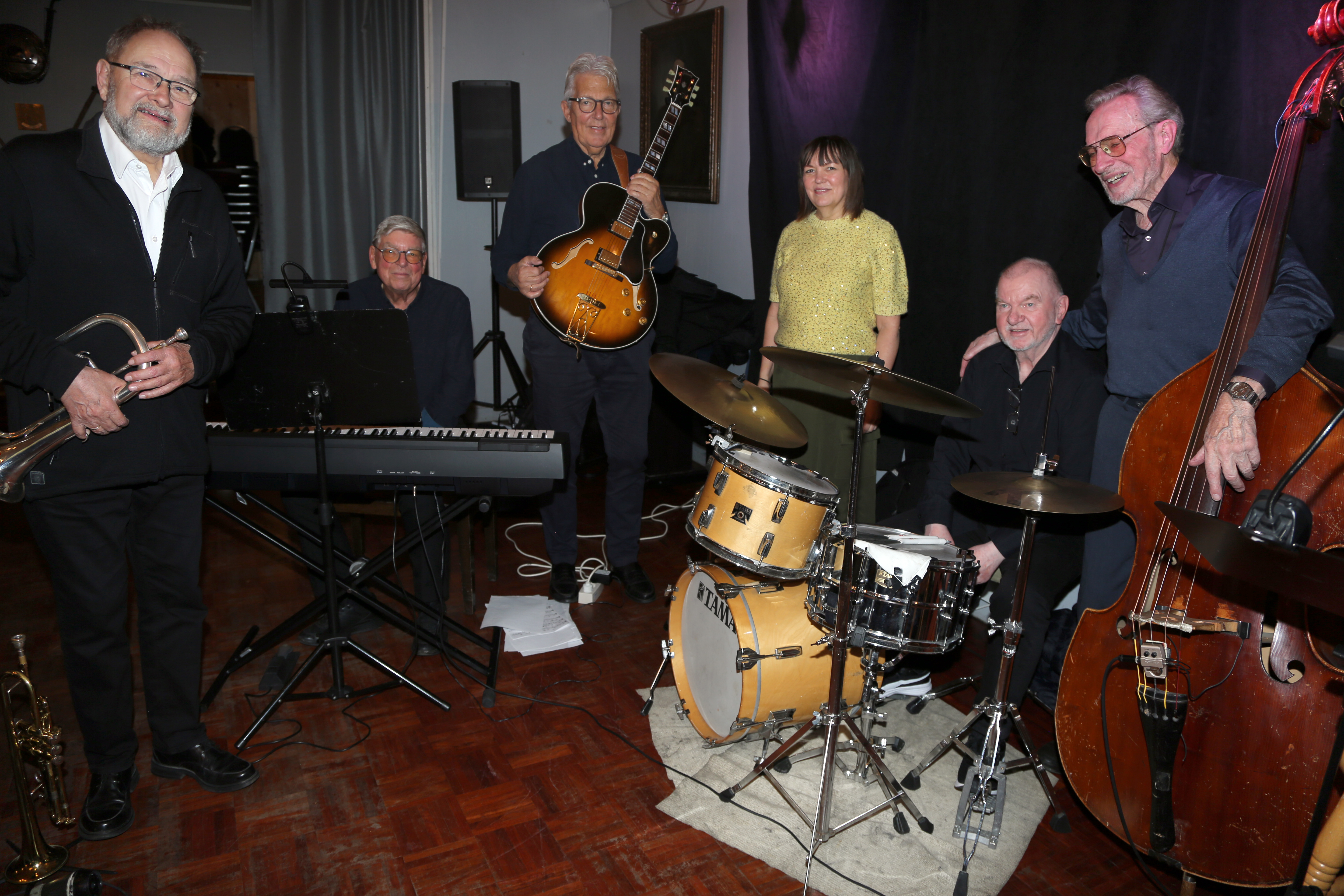 HERLIG JAZZGJENG: Erik Halvorsen (f v), Freddy Hoel Nilsen, Knut Mikalsen, Åse Karin Hjelen, Rune Tollefsen og Martin Måseide leverte virkelig varene på Vardeheim. FOTO: Rolf E. WulffBilde 1 av 10