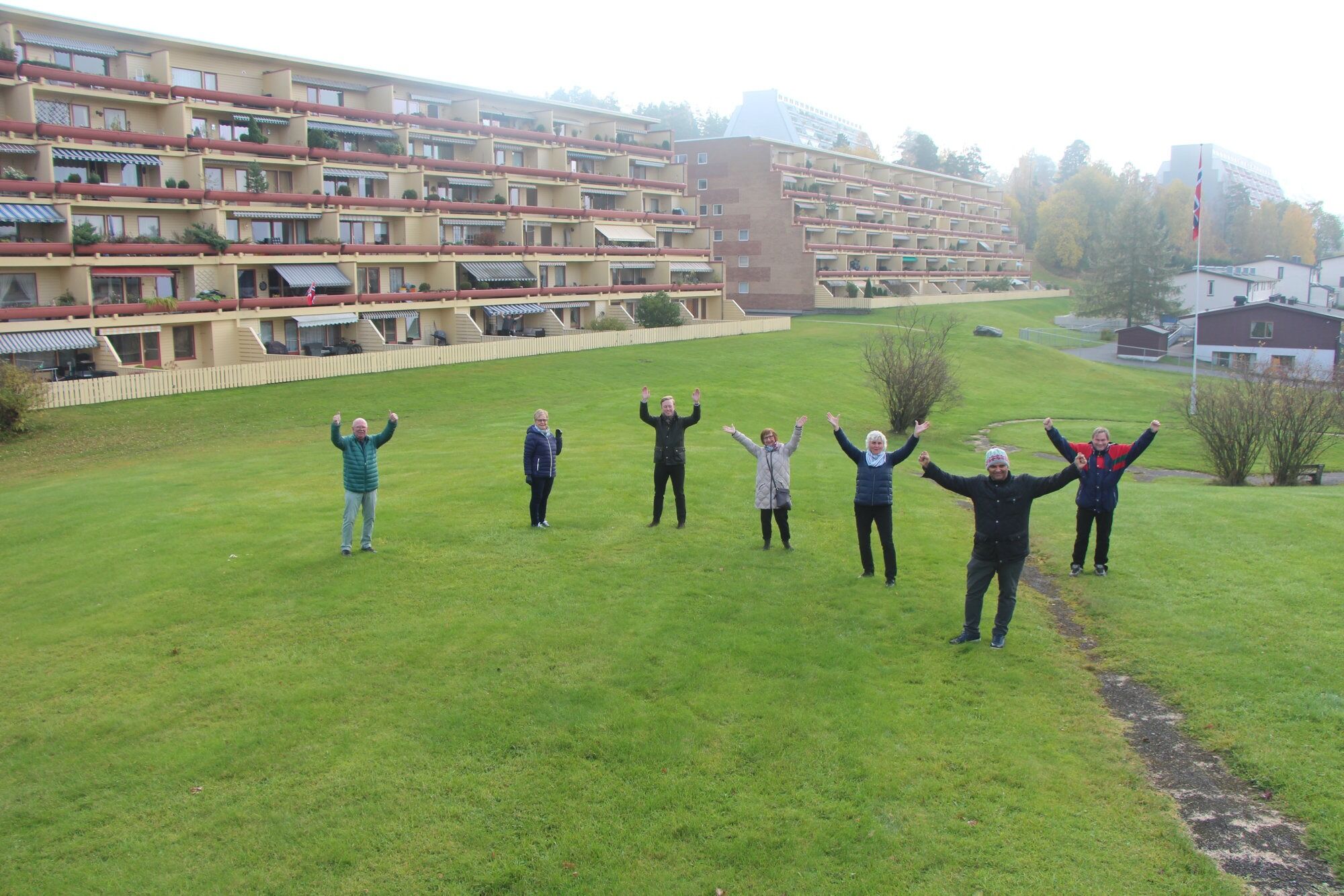 LOKALDEMOKRATIET SEIRET: Lørdag var det duket for en liten feiring på Vestli. Utvidelsen av Gullberget barnehage skrinlegges til stor jubel fra beboerne. Her på den aktuelle gressletta barnehagen skulle reises. Gullberget barnehage helt til høyre i bildet. Foto:Bilde 1 av 1