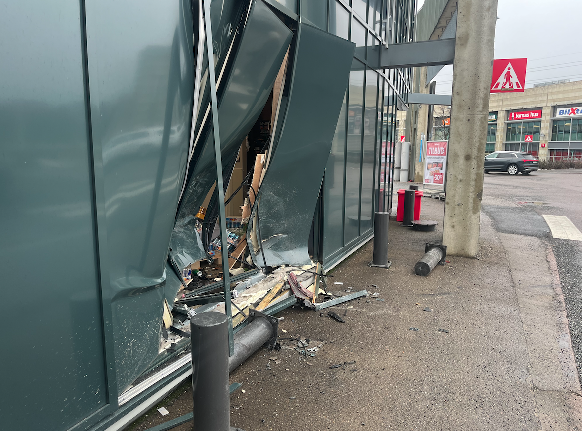 – Jeg gikk inn og så at det var et hull i veggen, med en bil som tittet inn. Jeg sjekket om det gikk bra med føreren, og det var flere som var raskt på plass for å forsikre om at det ikke var noen personskader.