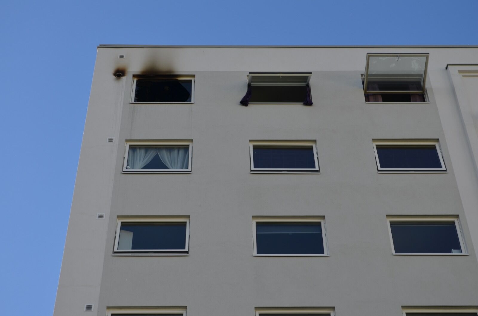 Det var rett etter klokka 14 på søndag at Brann- og redningsetaten fikk melding om brannen i øverste etasje i en blokk.