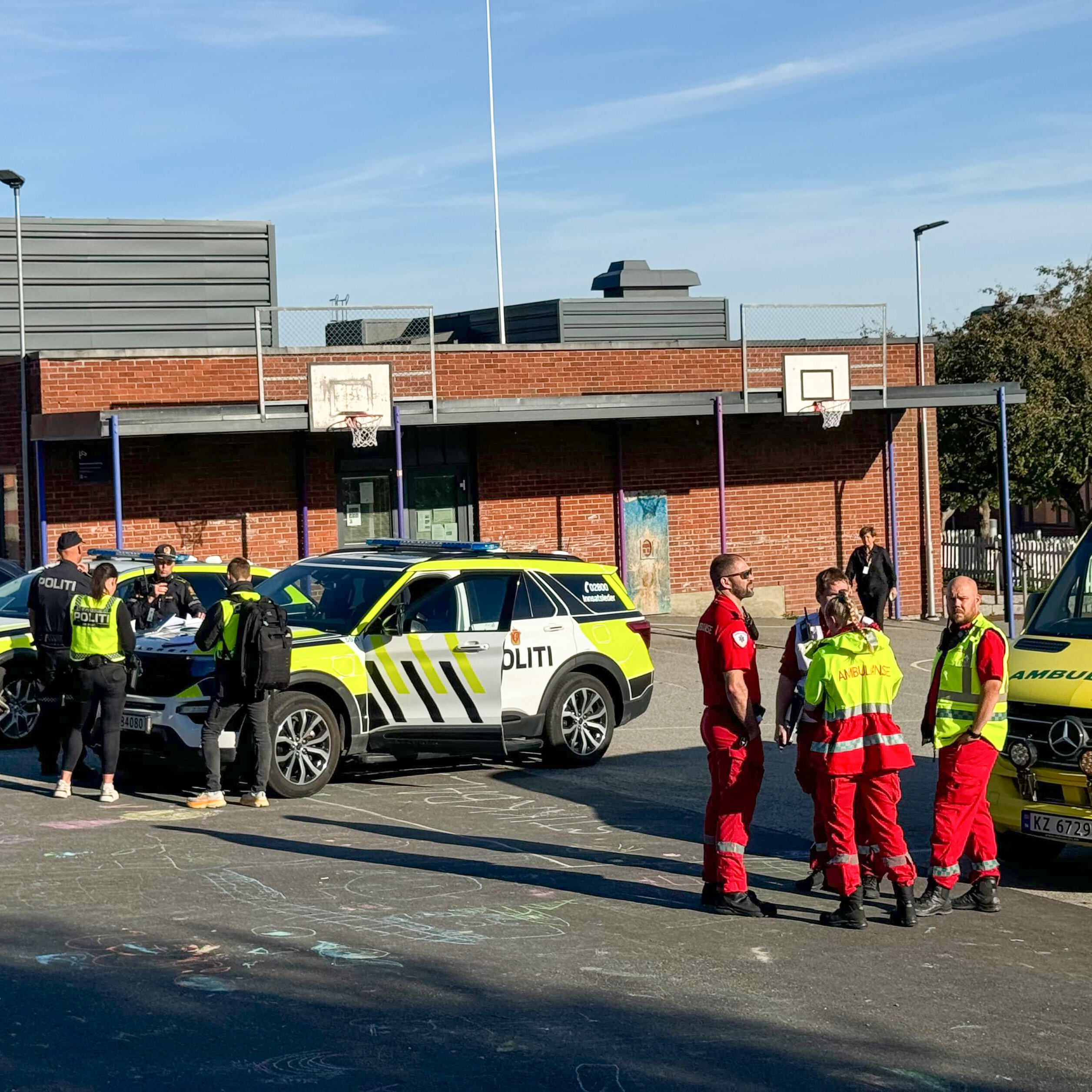 ALVORLIG HENDELSE: Det ble avfyrt flere skudd på Linderud skole onsdag ettermiddag.Bilde 1 av 2
