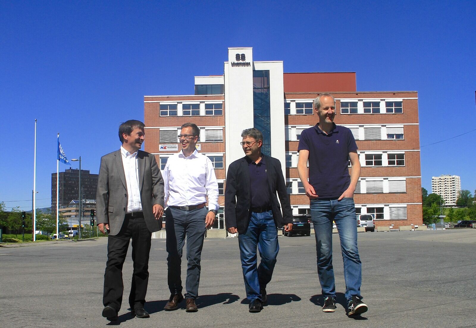 GLEDER SEG: Erik Stensli i Ulven AS (t.v.) og Rolf Erik Bugge i Norgesgruppen sammen med Jan Vada og Morten Raugstad i A Bygg går sammen om transformasjonen på Ulven. Foto:Bilde 1 av 2For å se disse bildene må du ha et abonnement Byggestart på Ulven Kenneth Fossheim Publisert 14. jul 15 kl. 13:00 Del på sosiale medier Del Facebook Twitter E-post Abonnement