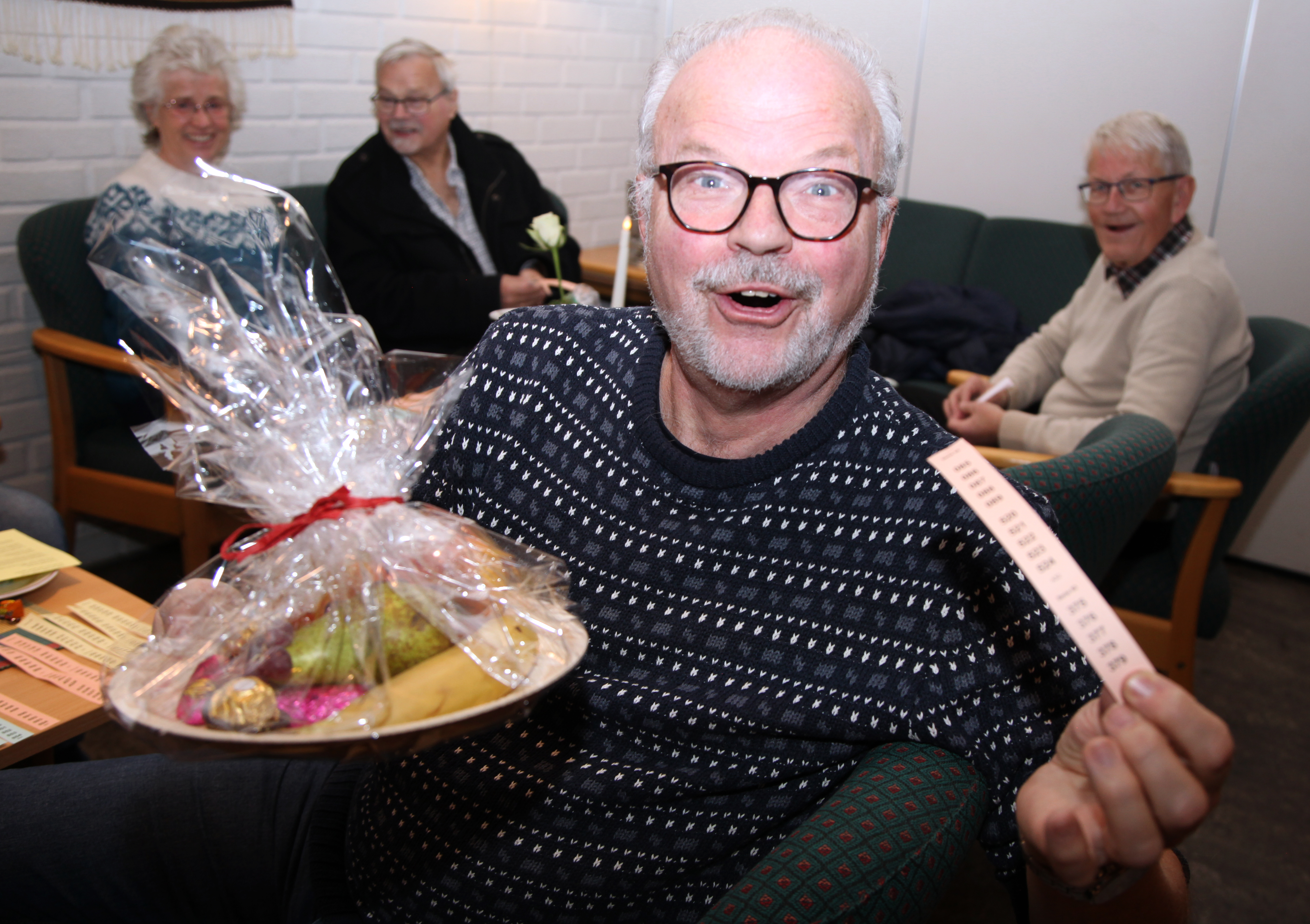 BLID GEVINSTVINNER: Det tok ikke lang tid før Jarl Vilming hadde sikret seg den første gevinsten i åresalget – og de fortsatte å renne inn! FOTO: Rolf E. WulffBilde 1 av 9