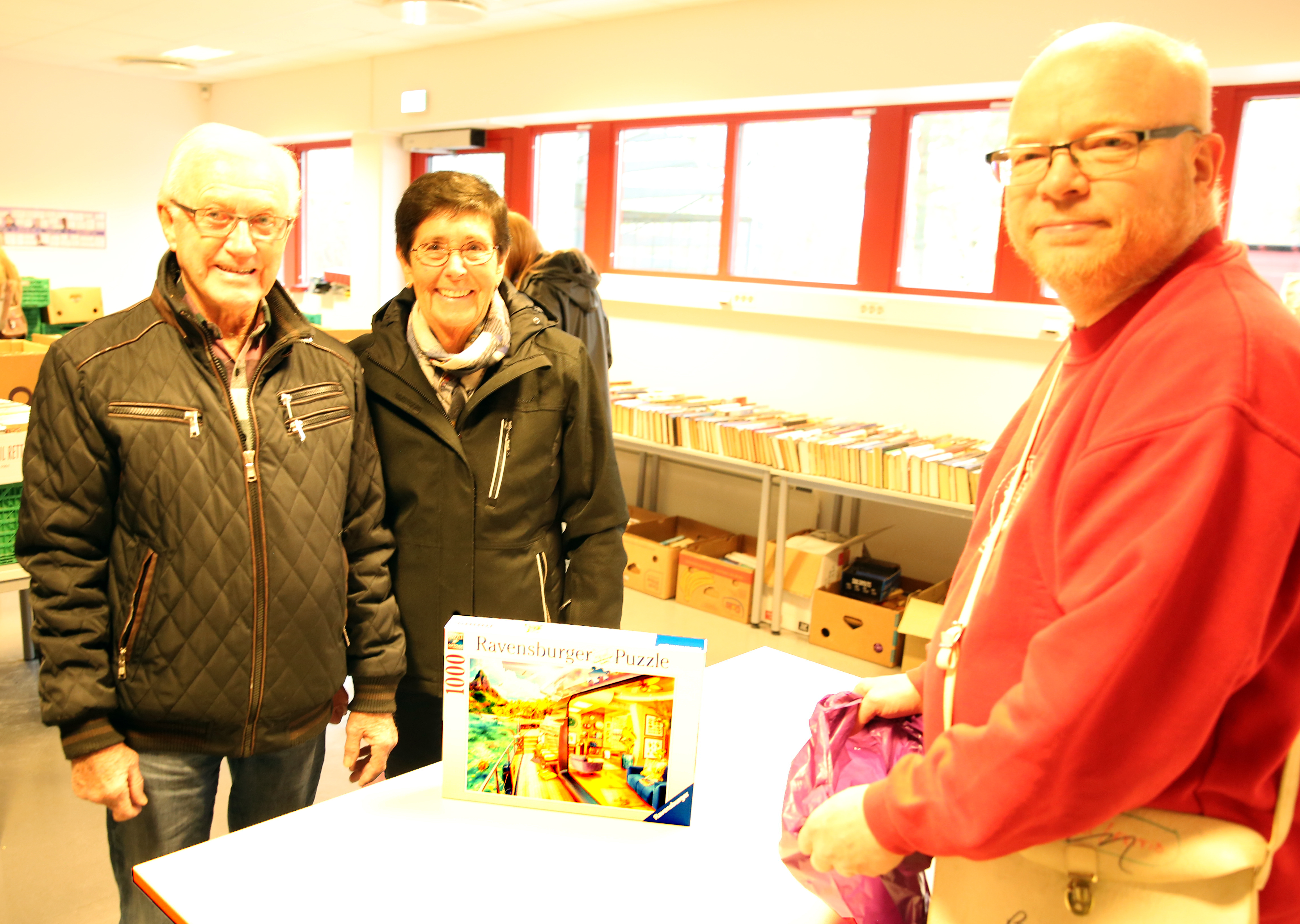 ØKONOMISK SIKKERHET: Greta Andersen tok med seg "banken" i form av mannen da hun skulle betale for puslespillet til Øystein Grinna. FOTO: Rolf E. WulffBilde 1 av 3