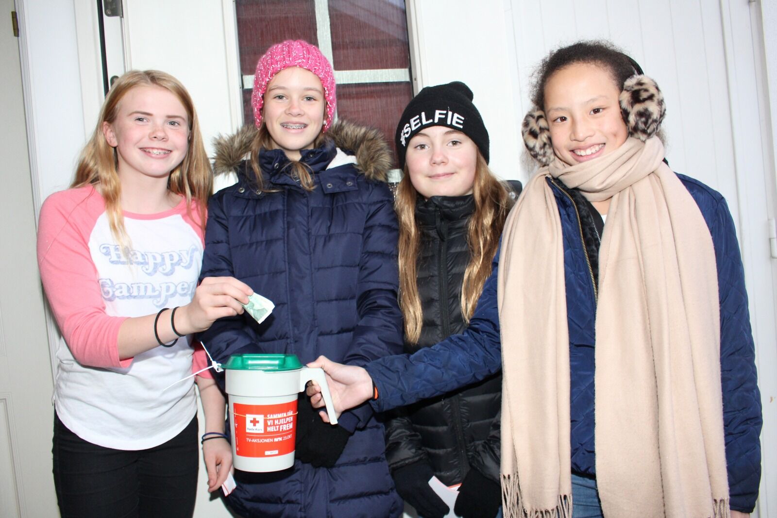 BIDRAR: Isabel Holsæther (11, f.v.) støttet TV-aksjonen på søndag og gir her et bidrag til bøssebærerne Anne-Marte Thorkildson (12), Ingrid Rasmussen (11) og Yenni Tran (12) – som også er Isabels venninner. Foto:Bilde 1 av 1 TV-aksjonen 2016: Dalen ga 1,9 millioner Elisabeth T. Faane Publisert 27. okt 16 kl. 13:52 Del på sosiale medier Del Facebook Twitter E-post Abonnement